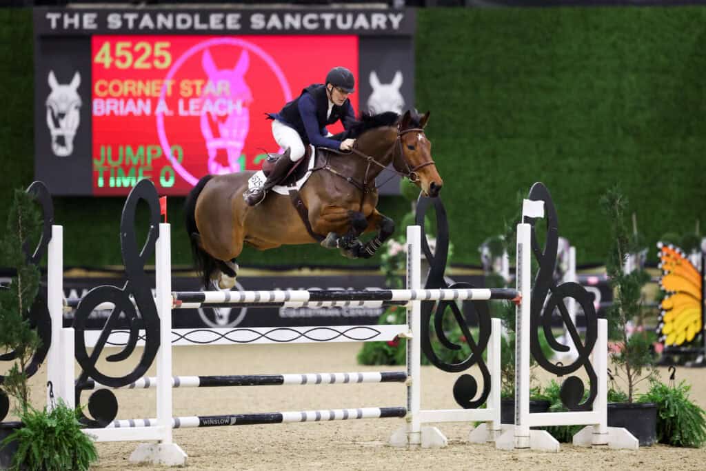 Cornet Star (Cornetto x Conqua Z), an 11-year-old Belgian Warmblood gelding, was next to follow with Brian Leach in the irons. The duo secured a leading time of 29.22 seconds but lowered a rail, ultimately finishing third.