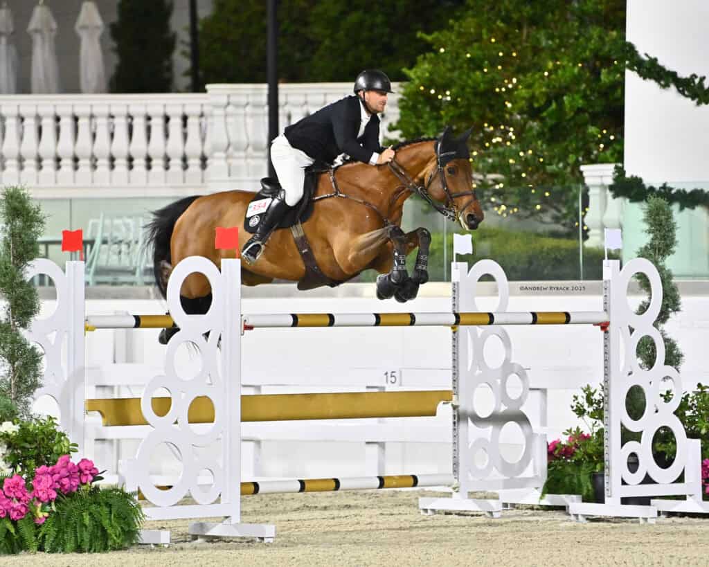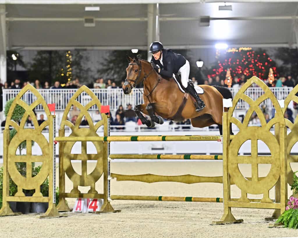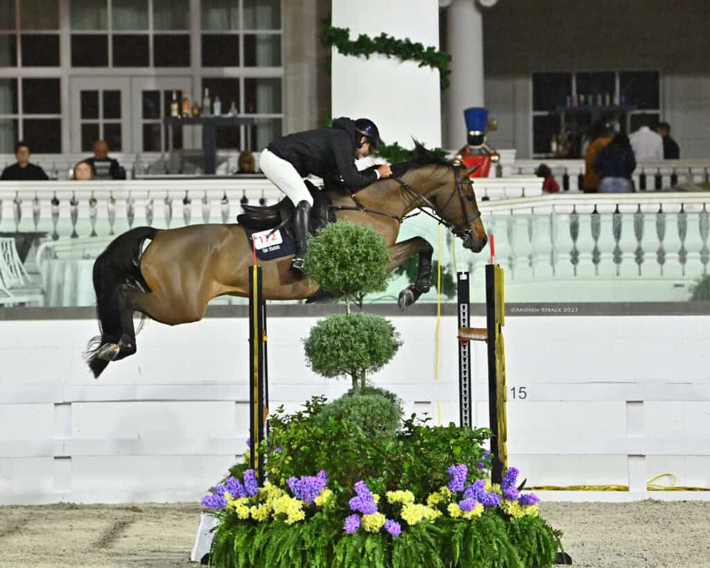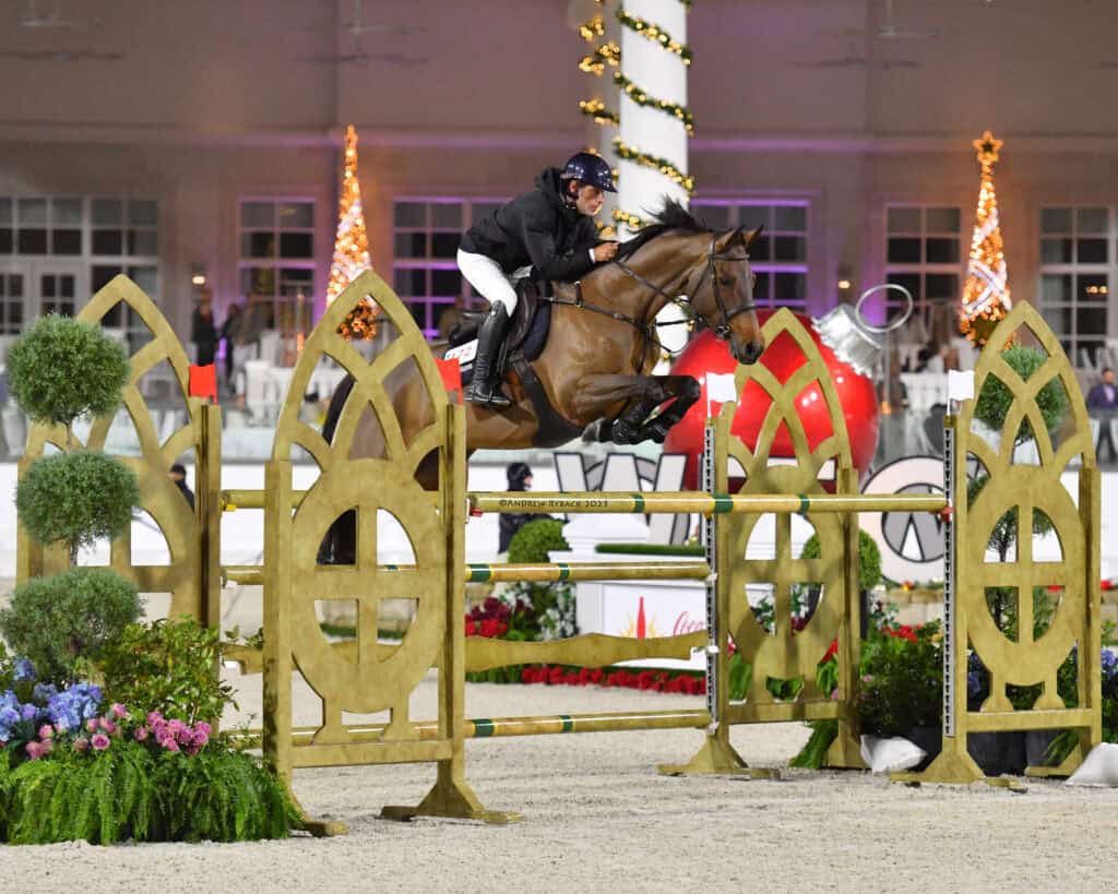 Saturday night’s course matched the festive energy surrounding the iconic arena, featuring gingerbread men, toy soldiers, snowmen, and other holiday-themed decorations. Catsy Cruz (USA) once again designed flowing tracks with a tidy time allowed. An even 10 combinations navigated their way to a clear first round, setting the stage for a thrilling jump-off that included top riders from Ireland, Switzerland, the United States, Canada, Mexico, Germany, Colombia, and Portugal.