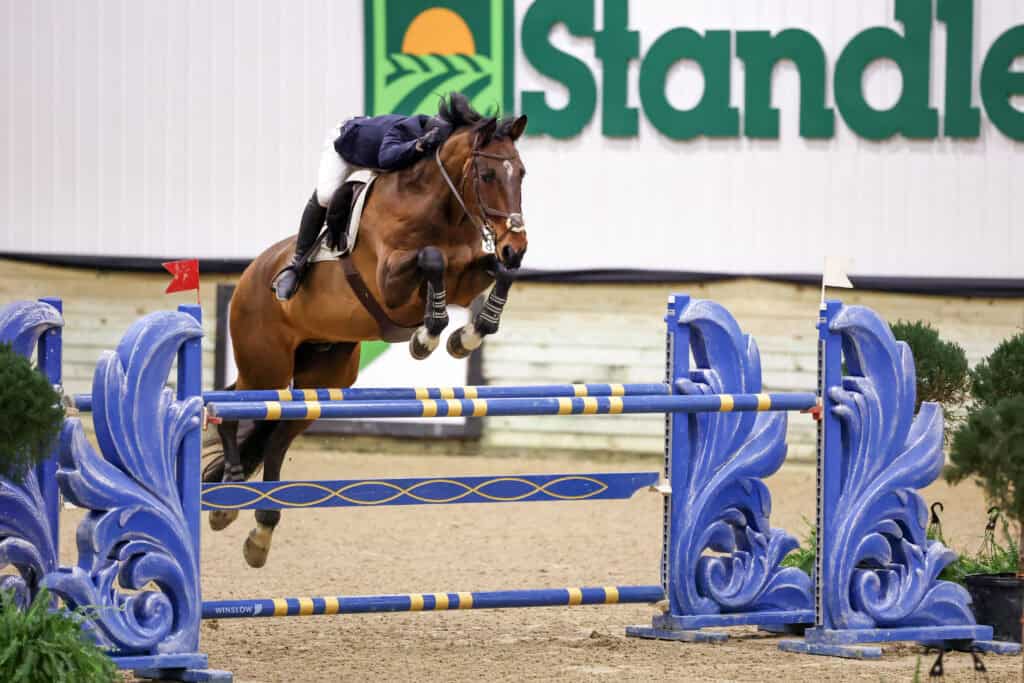 Wilmington, Ohio – Exhibitors crowded the stands of the Standlee Sanctuary Saturday evening at World Equestrian Center – Wilmington (WEC) to watch horse-and-athlete combinations contest the $30,000 Grand Prix of Winter Classic 11.