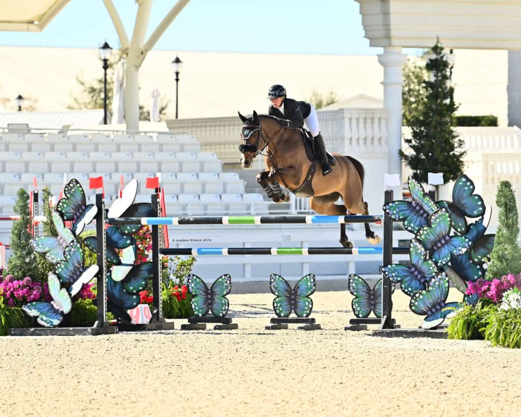 Hunter Holloway (USA) claimed the second-fastest time, guiding Sophie Heron’s 11-year-old KWPN mare Koblenz (Arezzo VDL x Otangelo) to a clean round in 39.50 seconds.