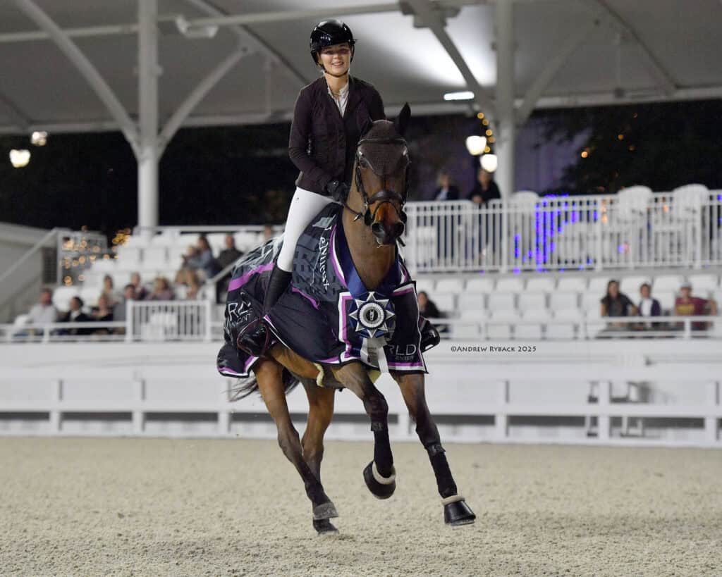 Friday night’s class marked a meaningful target achieved. “I competed with her under the lights two years ago, so this is her first time in a while. This is one of my favorite weeks to show because of all the Christmas lights. My main goal for the year was for her to win, and we achieved it. I am so proud of her; she was incredible.”