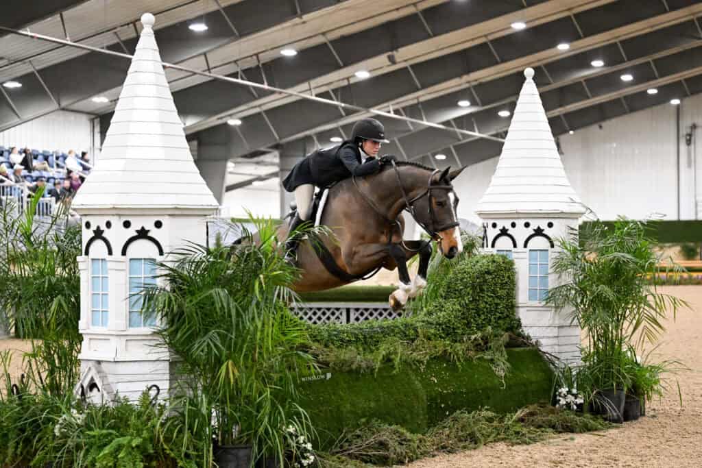 Miranda spoke about her partnership with “John,” saying, “I got him about two and a half years ago as my junior hunter horse, and he’s just such a resilient, spectacular horse. He’s gone through multiple unexpected injuries in the past two years, but he bounced back amazingly. He’s taken me to Junior Hunter Finals and Amateur Hunter Finals, where we were able to grab a couple ribbons. I’m just so excited to be here with him!”