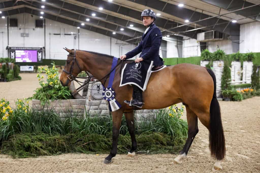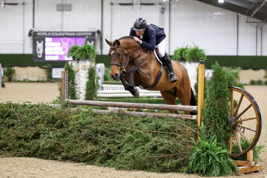 Wilmington, Ohio – World Equestrian Center – Wilmington (WEC) played host to yet another Hunter Derby Friday in the R+L Arena, where riders tackled Robert Barton’s flowing track in style. The judges awarded high scores into the 90s, but no one came close to Jason Berry and Willow Wind LLC’s Overruled (Cascavelle NT x Hello Shirly) in the $15,000 USHJA National Open Hunter Derby.