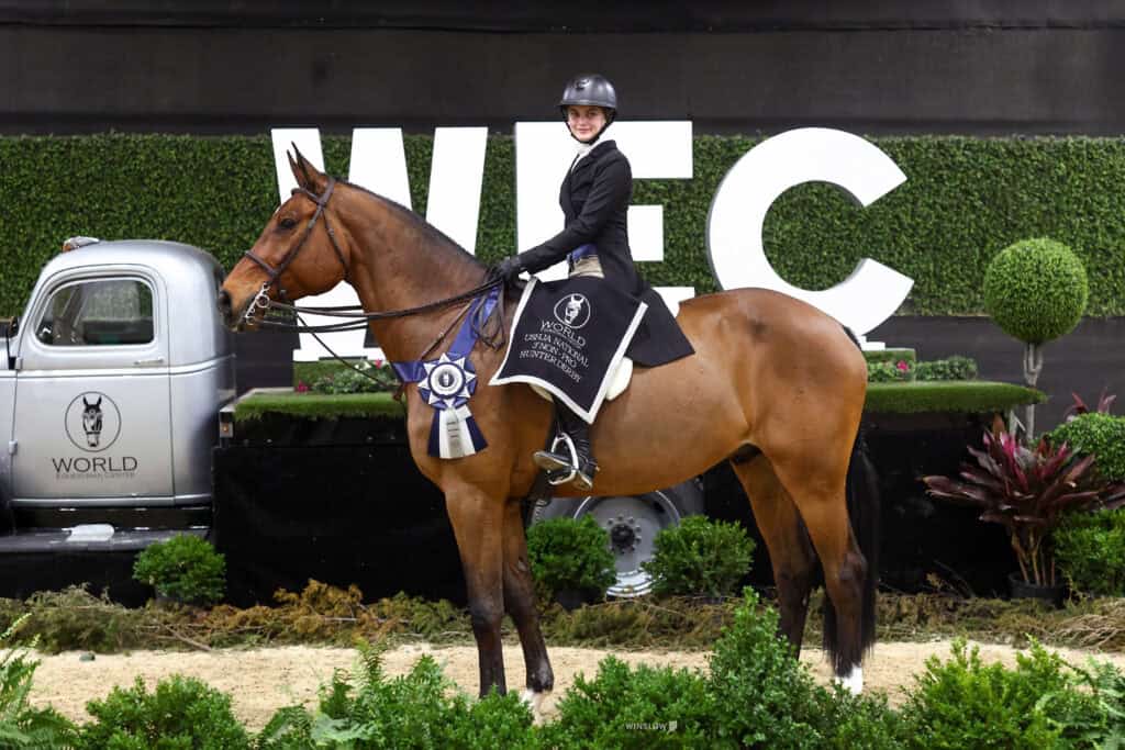 Wilmington, Ohio – A field of hunter talent took to the R+L Arena at World Equestrian Center – Wilmington (WEC) Friday evening for the $15,000 Standlee USHJA National Open Hunter Derby of Winter Classic 12.