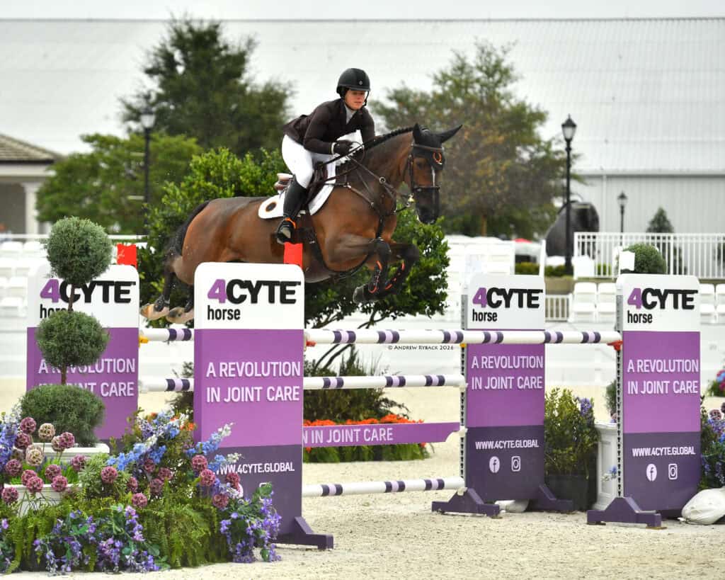 Ocala, FL – Forty horse-and-rider combinations representing 10 countries braved the rain on Sunday morning for the $65,000 4CYTE Grand Prix CSI2*. In the end, just four pairs advanced to the jump-off, where it was last to go, Stella Wasserman (USA), who piloted her own Precious Dwerse Hagen (Cornet Obolensky x Casall) to the win.