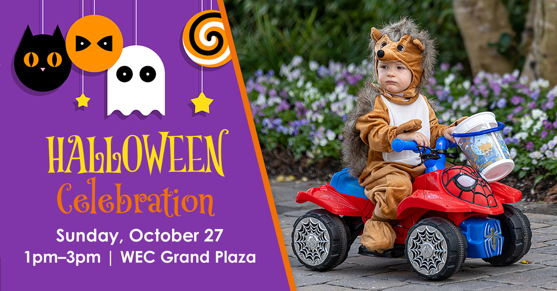 Gather your family and embark on a free, spooktacular trick-or-treating adventure on the WEC Grand Plaza from 1pm to 3pm on Sunday, October 27. Parade past retailers and restaurants throughout the Grand Plaza on your way to cookie and pumpkin decorating, courtesy of Signature Brands. Capture family memories in the photo booth and enjoy spirited entertainment from our talented balloon artist.