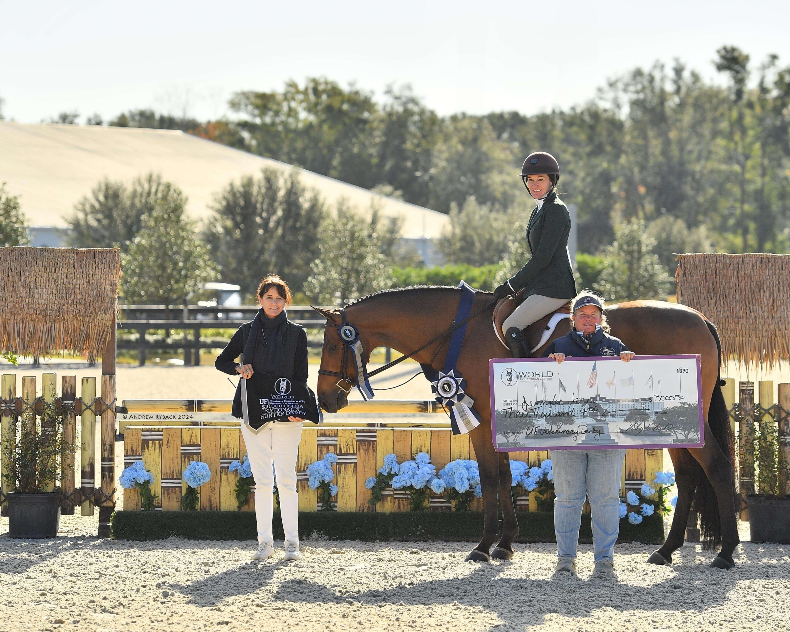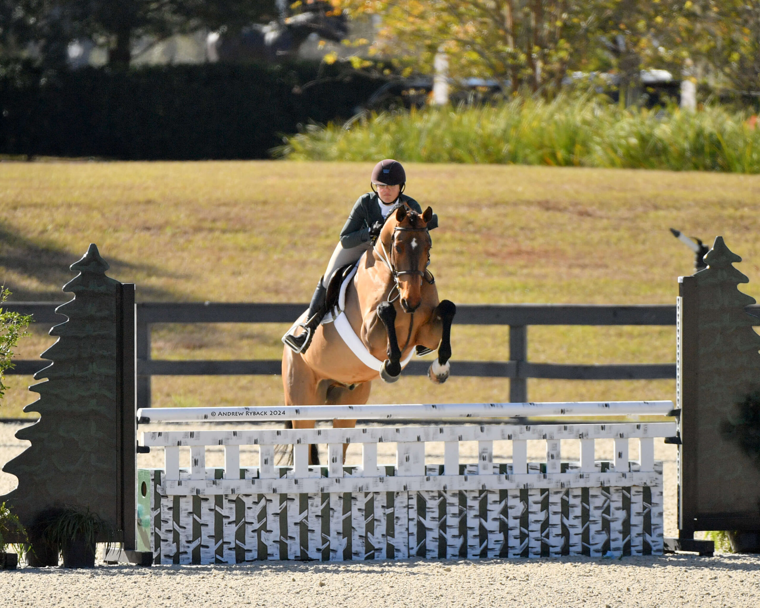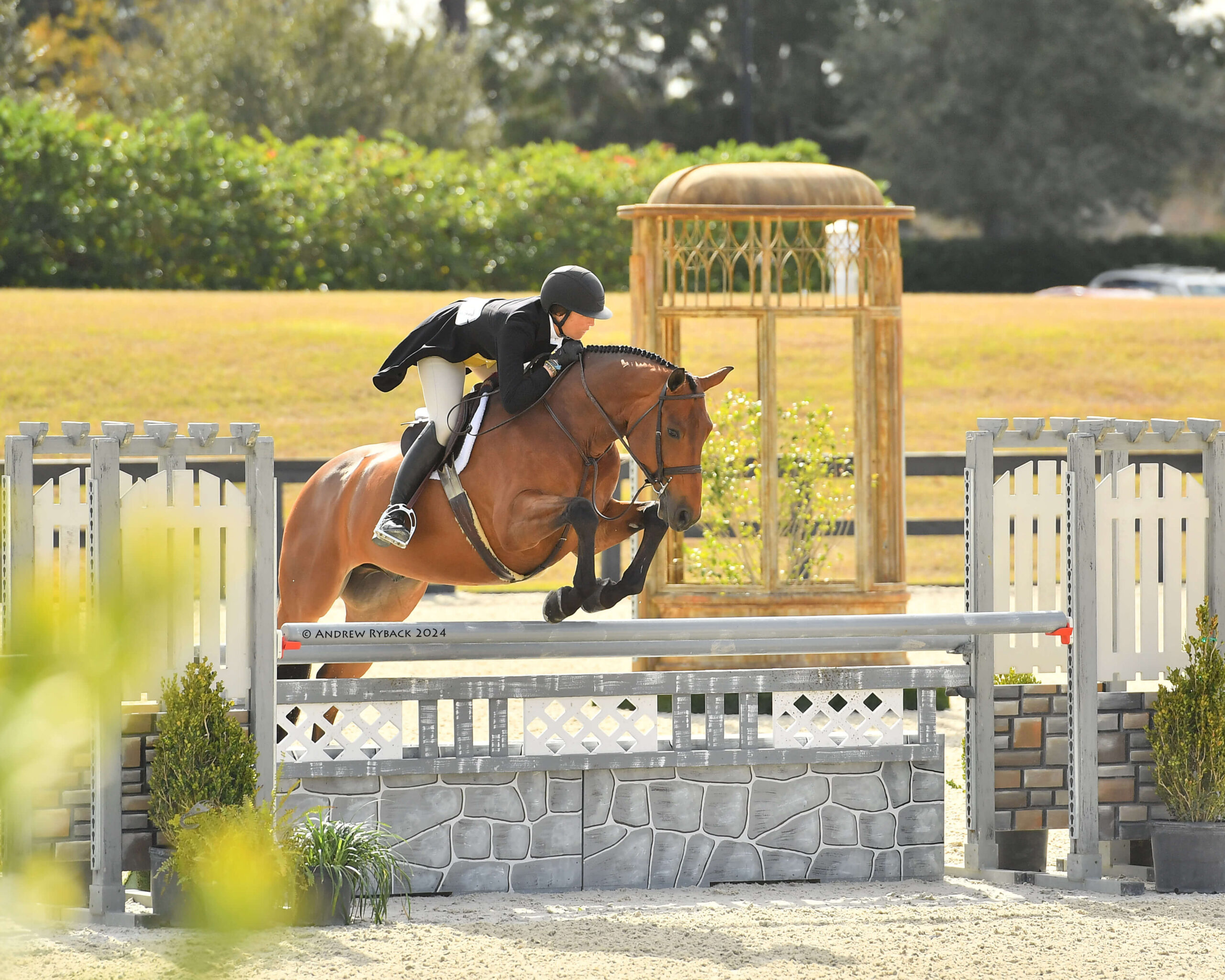 Ocala, FL – The final Hunter Derby Friday of 2024 brought a stunning lineup of Hunters to the WEC Stadium once again, featuring three derbies: the $12,500 Golden Ocala 3’6”-3’9” Hunter Derby, the $10,000 UF Veterinary Hospital USHJA National 3’ Open Hunter Derby, and the $10,000 USHJA National 3’ Jr/Am Hunter Derby. Tucker Williams designed the flowing courses where horses showcased their style.