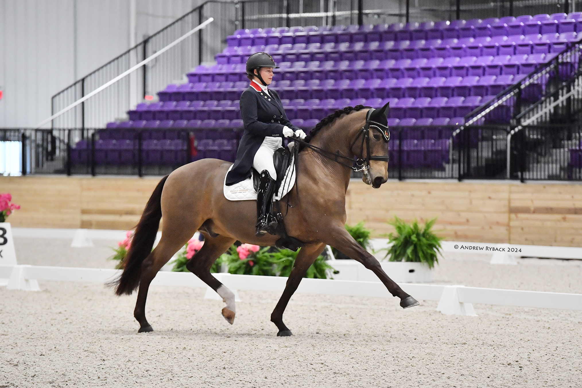 It was a wonderful night for Gallagher and “Come Back,” who had only performed this freestyle at a CDI once in 2023 but had prepared at national shows leading up to this. Not only did Come Back give Gallagher a great feeling, but they scored a personal best 71.475% with all five judges scoring more than 70%.