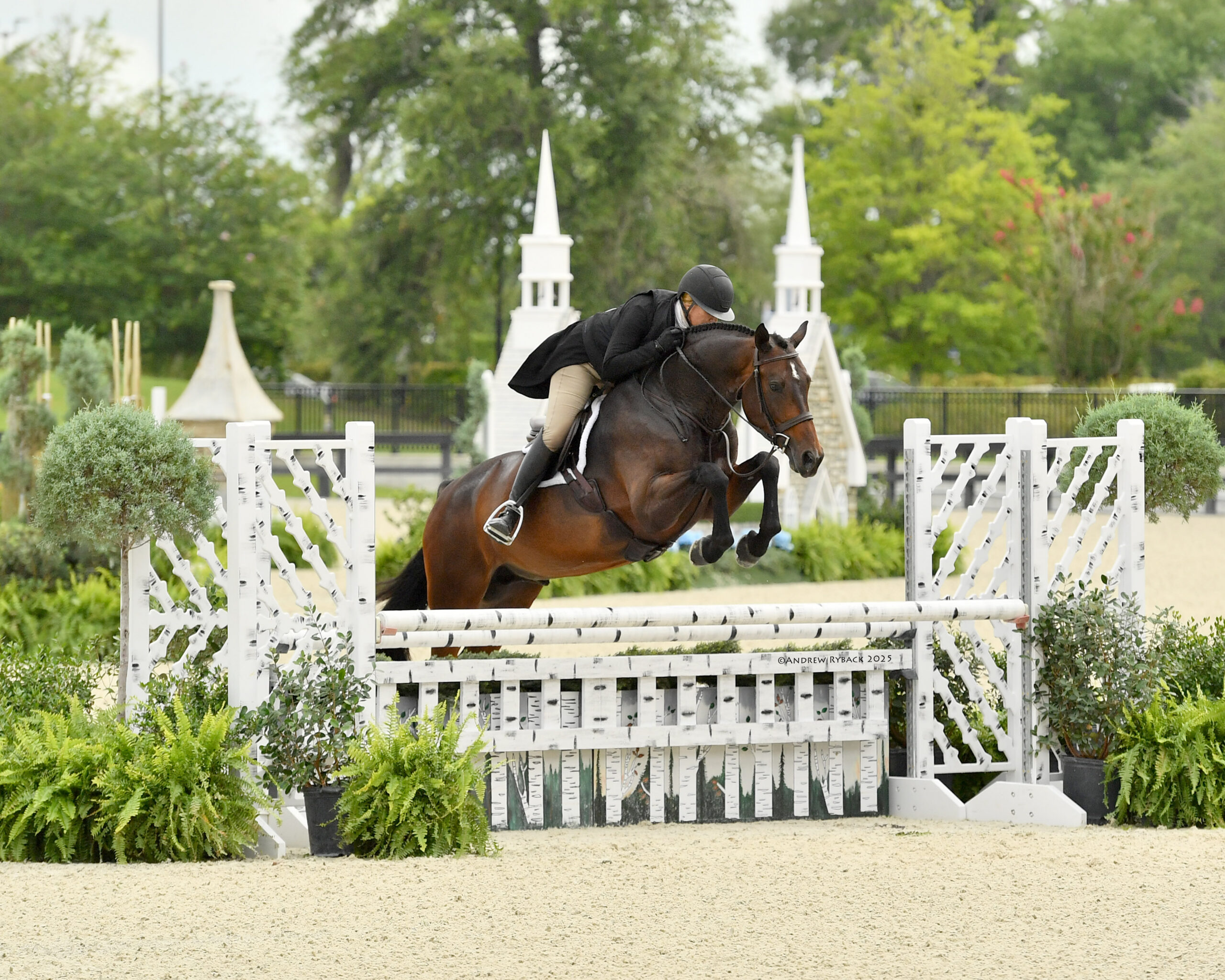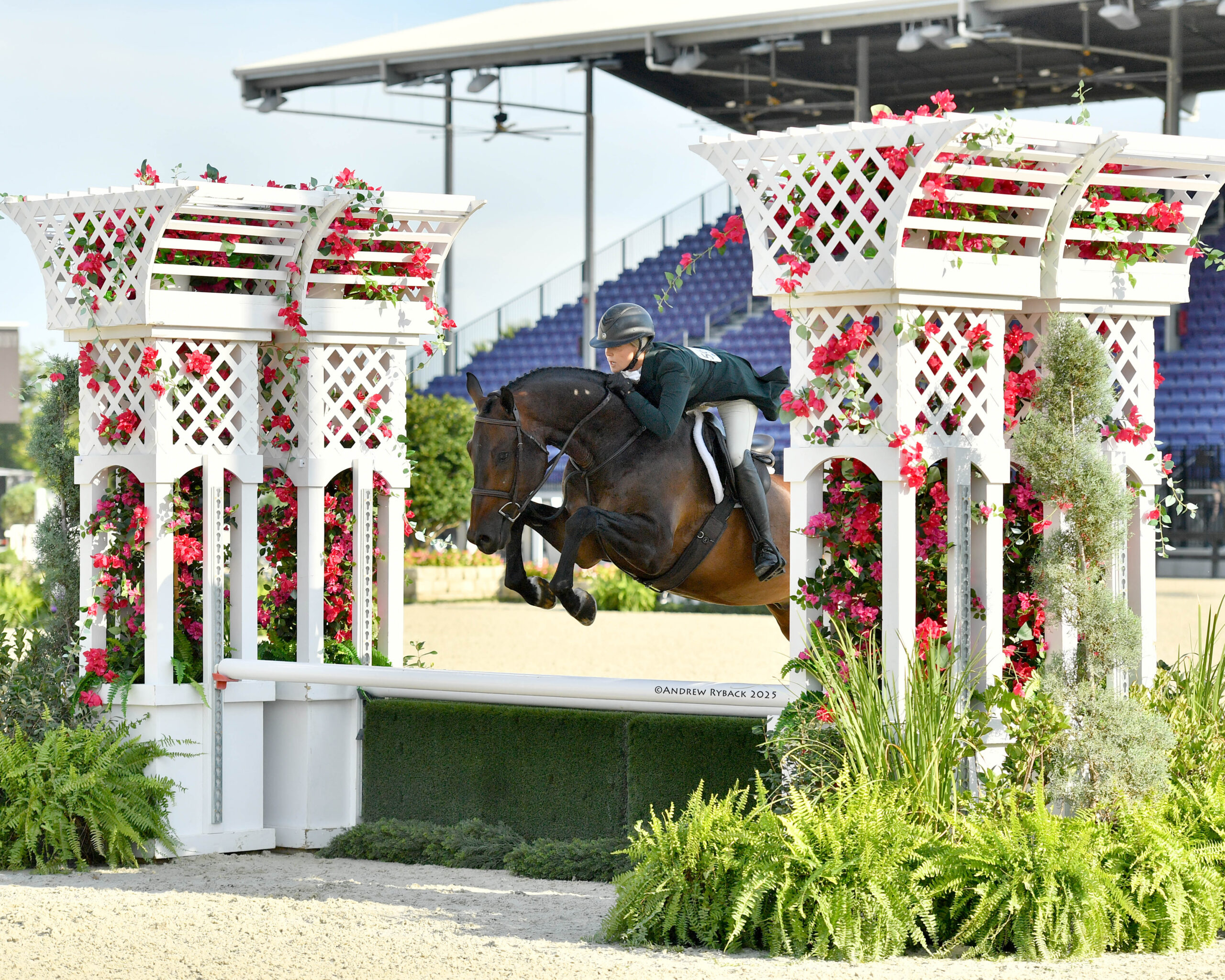 The class marked the eight-year-old gelding’s show debut, and he stepped up to prove his talent. “He was recently imported, this is his first horse show,” shared Fenney. “He’s awesome, very straightforward at the jumps and you don’t have to worry about setting him up too much.”