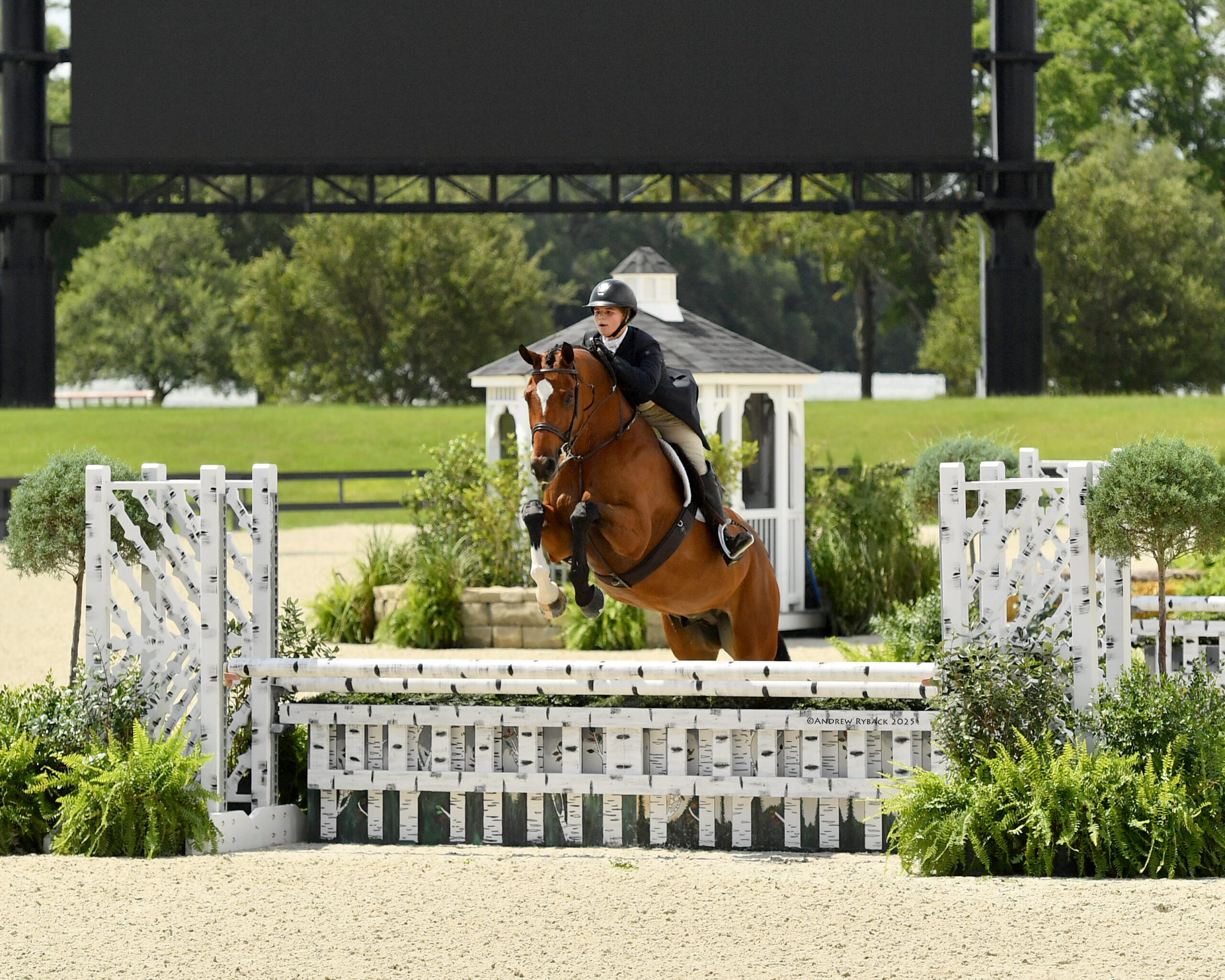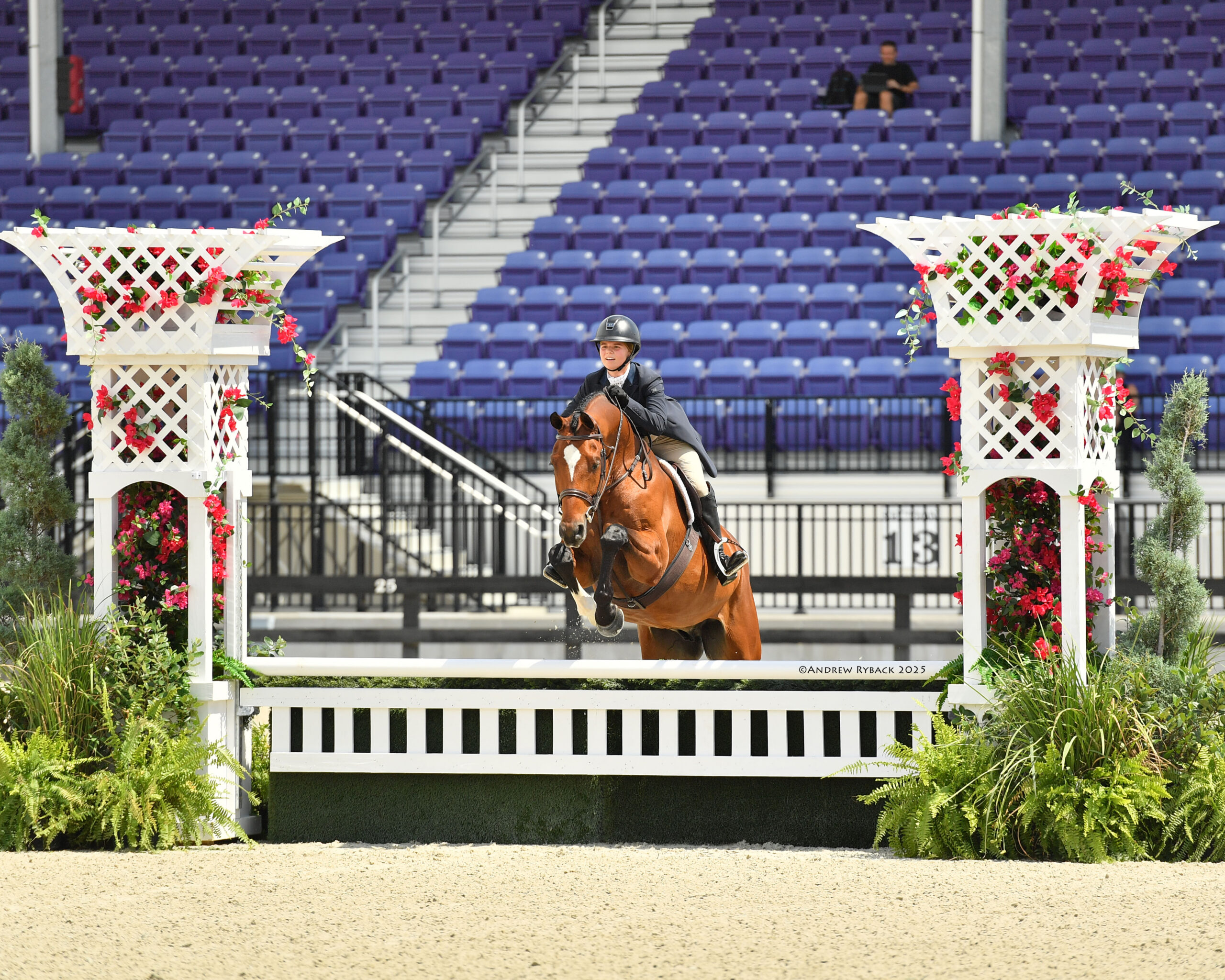 In the classic round, Prusso kept the new environment in mind. “I was definitely nervous in the first round. The Stadium can be an intimidating ring, but he really stepped up,” she shared. “The course was a little challenging, especially starting at the hedge and going right into the lines, but he answered every question perfectly.” The pair earned a solid first-round score of 86, placing them second on the leaderboard.