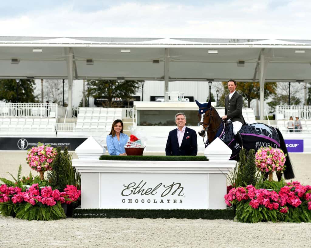 February 12, 2026 – Ocala, FL – As the first of 17 in the jump-off, Ben Maher (GBR) and Ginger-Blue, owned by Jane Forbes Clark, set the standard with an uncatchable time for victory in the $117,000 1.55m CSI5*-W Longines FEI Jumping World Cup™ Qualifier presented by Ethel M Chocolates on Thursday, February 12, 2026, at World Equestrian Center – Ocala (WEC). The week culminates with the $300,000 1.60m CSI5*-W Longines FEI Jumping World Cup™ Ocala presented by MARS Equestrian on Saturday evening, February 14.