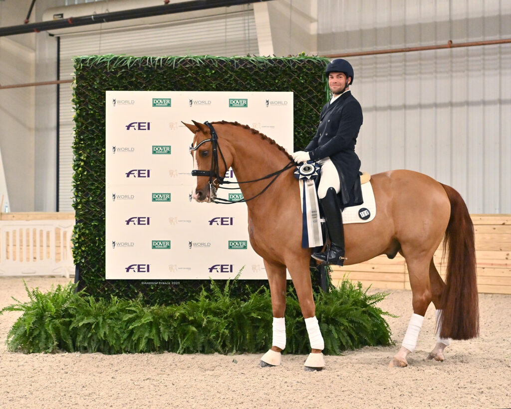 Ocala, FL – International dressage competition continued at World Equestrian Center – Ocala (WEC) on Saturday, March 8, 2025, during the WEC March Dressage CDI4* presented by Hampton Green Farms. In the Intermediate 1 CDI1* Benjamin Albright (USA) and DSP Dominy, owned by The DSPD Group, added expression to their test and rose to the top for victory.