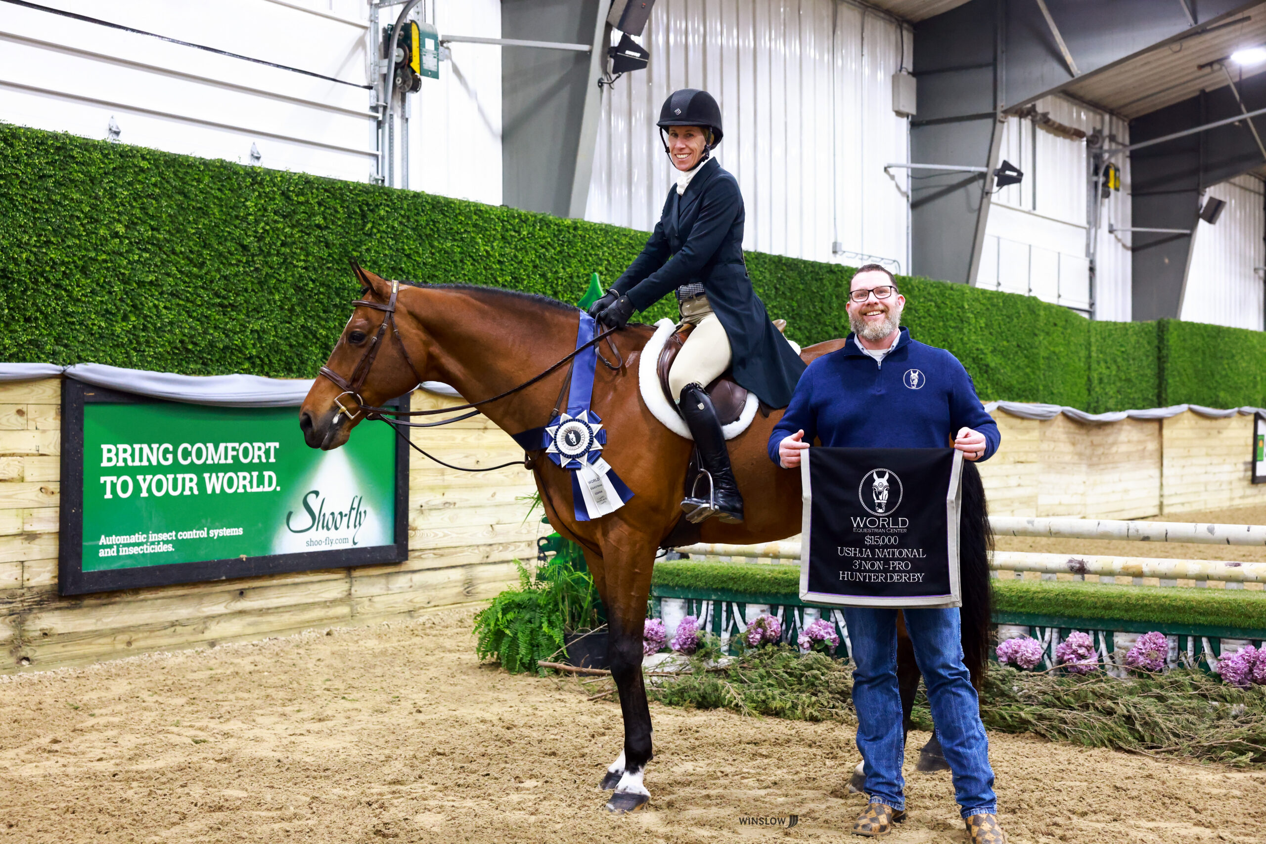The $15,000 USHJA National Non-Pro Hunter Derby sponsored by Shoo-fly saw 29 horse-and-rider combinations compete over Michael Pegg’s (CAN) tracks with numerous scores reaching the 90s, though it was a familiar face that returned to the winner’s circle.