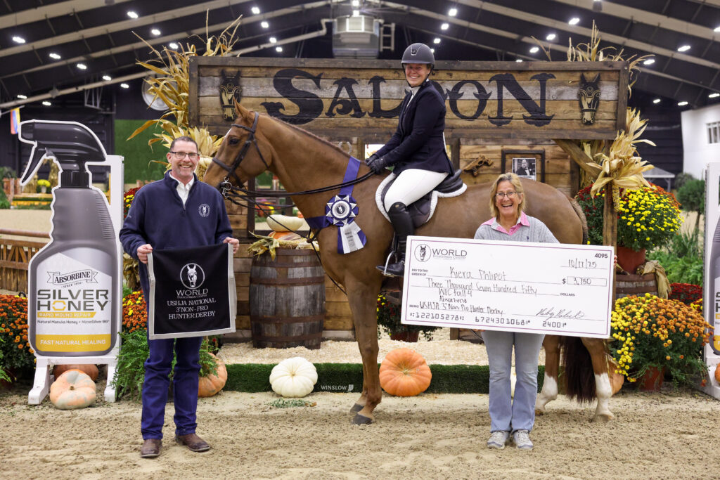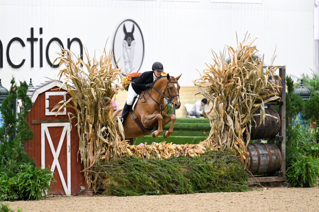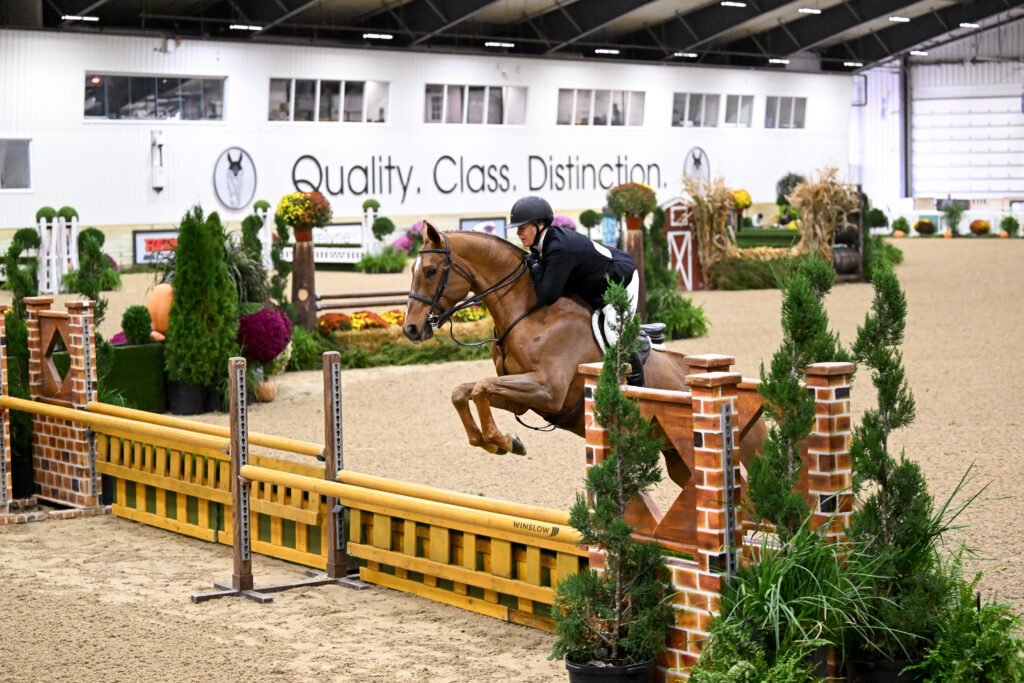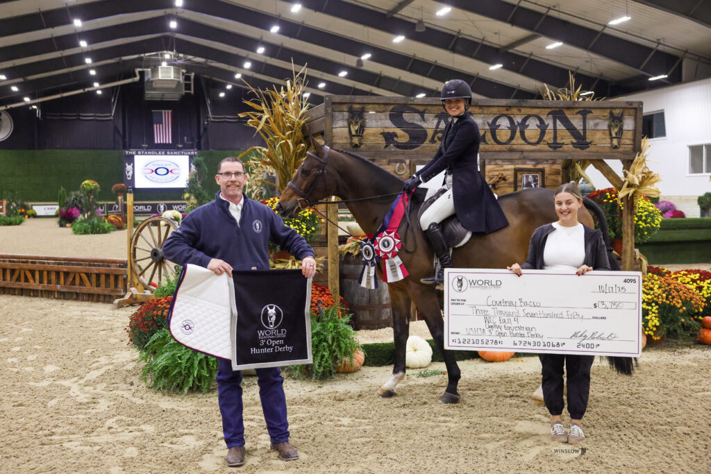 Wilmington, Ohio – Hunter Derby Friday at World Equestrian Center – Wilmington (WEC) brought a change of scenery during Fall Classic 4. Thirty-one riders gathered in the Standlee Sanctuary to showcase their hunters, but it was Courtney Bacso who delivered the standout performances of the day to win the $12,500 Ogilvy Equestrian USHJA National Open Hunter Derby.