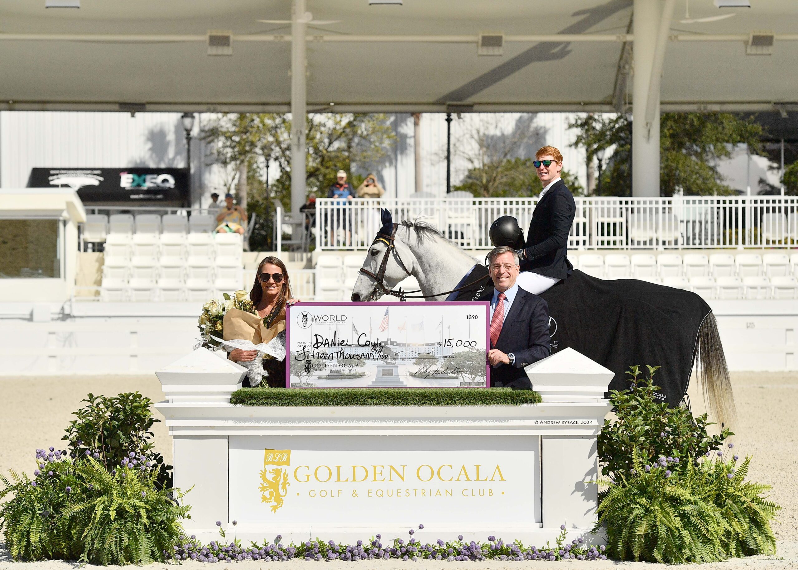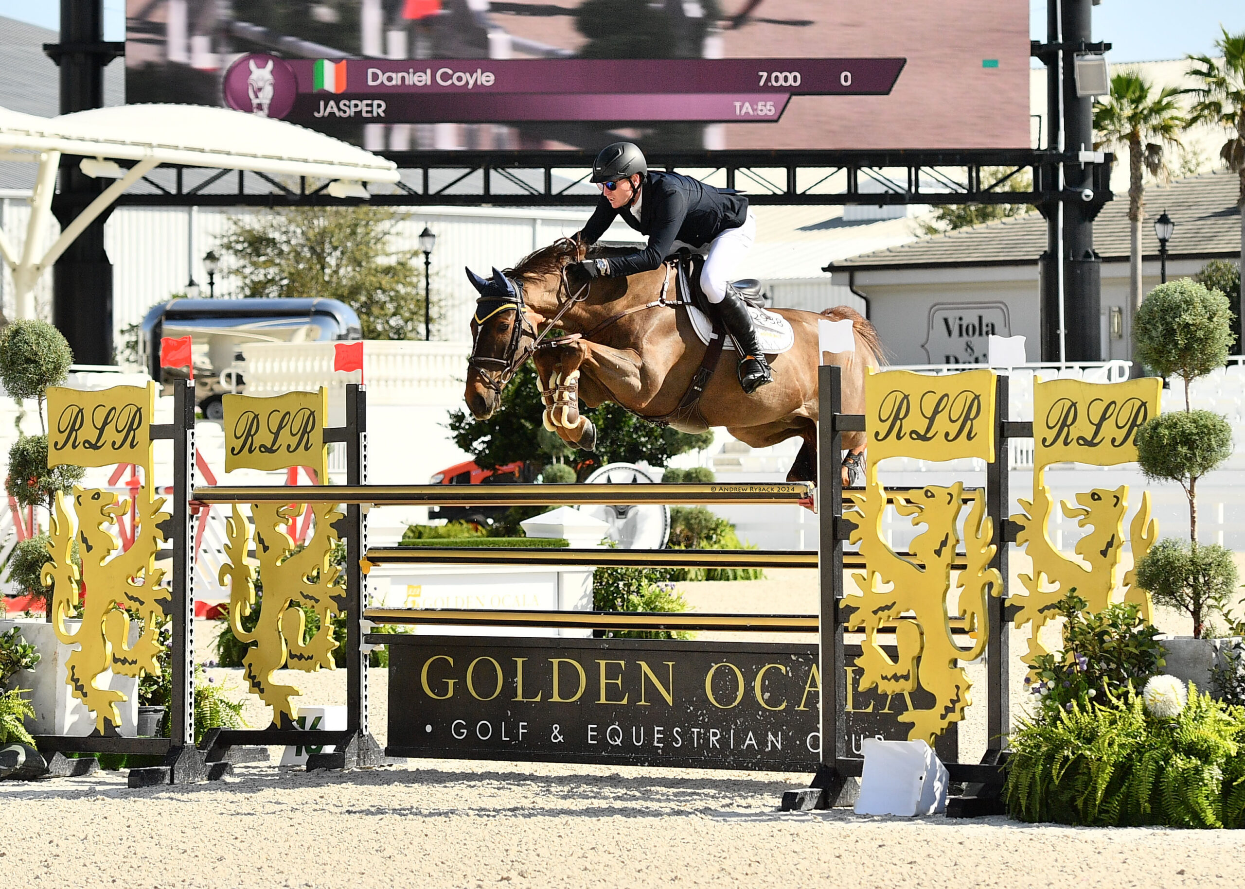 Ocala, FL – Competition continued early Sunday morning with a fresh set of top-notch horse-and-rider combinations from 10 different nations vying for top honors in the $50,000 Golden Ocala National Grand Prix. Irishman Daniel Coyle capped off his week with yet another spectacular win, claiming first and second with two remarkable mounts, Jasper and Lena VDL, both owned by Ariel Grange.