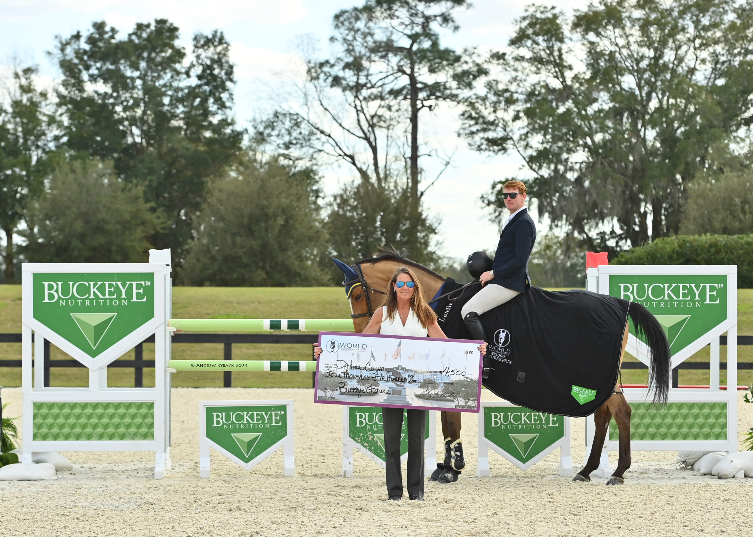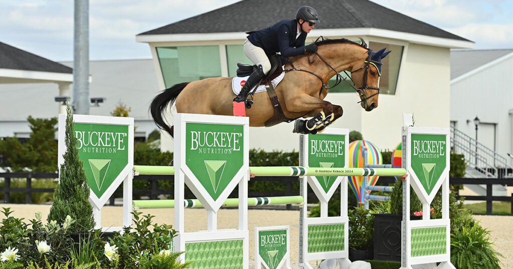 Ocala, FL – The $15,000 Buckeye Nutrition Futures Prix was the highlight Jumping event of the afternoon in the WEC Stadium as a field of 29 horse-and-rider combinations vied for the lion’s share of the prize money over a track built by FEI Level III course designer Joey Rycroft (CAN). Daniel Coyle (IRL) secured his third consecutive victory, this time aboard Amalia (Arezzo VDL x Kyacinthe), owned by Ariel Grange.