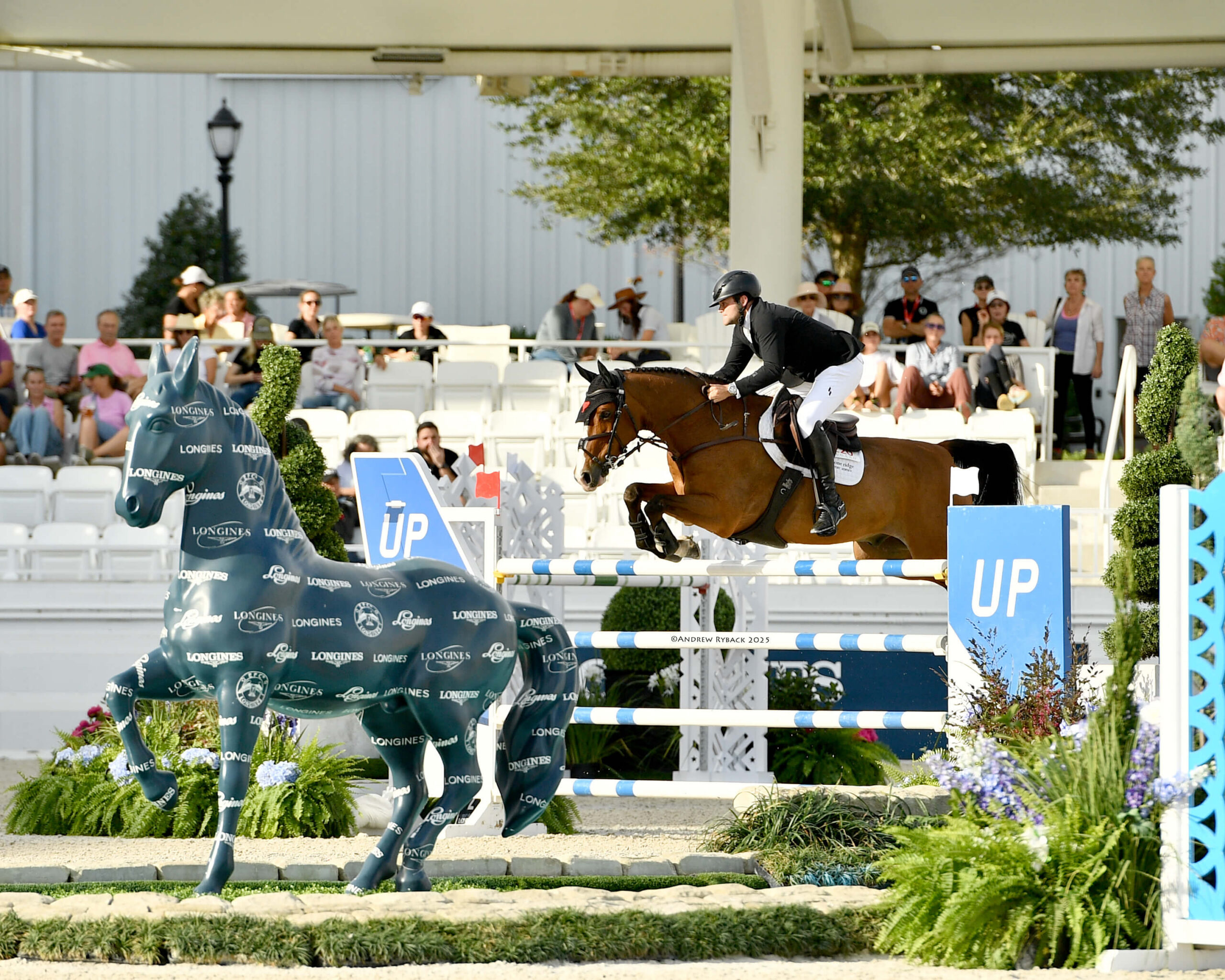 Jones saw Kraut go in the jump-off but did not make his jump-off plan based on other rides. “I just have to let him gallop,” he explained. “He can have a really big stride or a short one depending on what you’re doing because he’s so adjustable. I just set in the gallop, did the seven strides from one to two and then I had a really long shot over to the oxer which put me in that fast rhythm, and I just stayed in it. Daniel got me to the last — he had more pace to the last jump.”