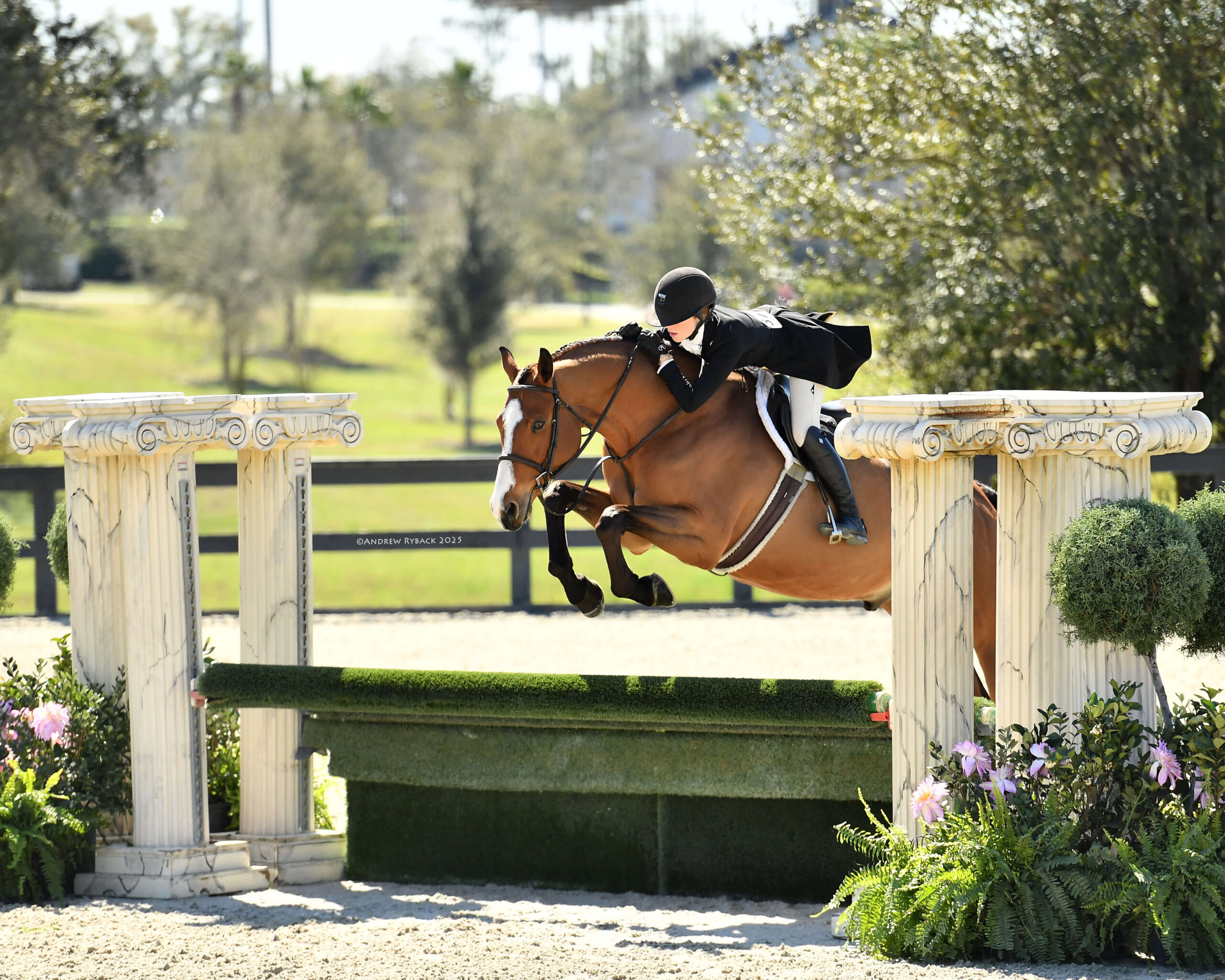 Lilly Geitner piloted Daniel Geitner’s Banks Mill, a 14-year-old Warmblood gelding, to yet another derby win in the $7,500 USHJA National 3’ Junior Hunter Derby.