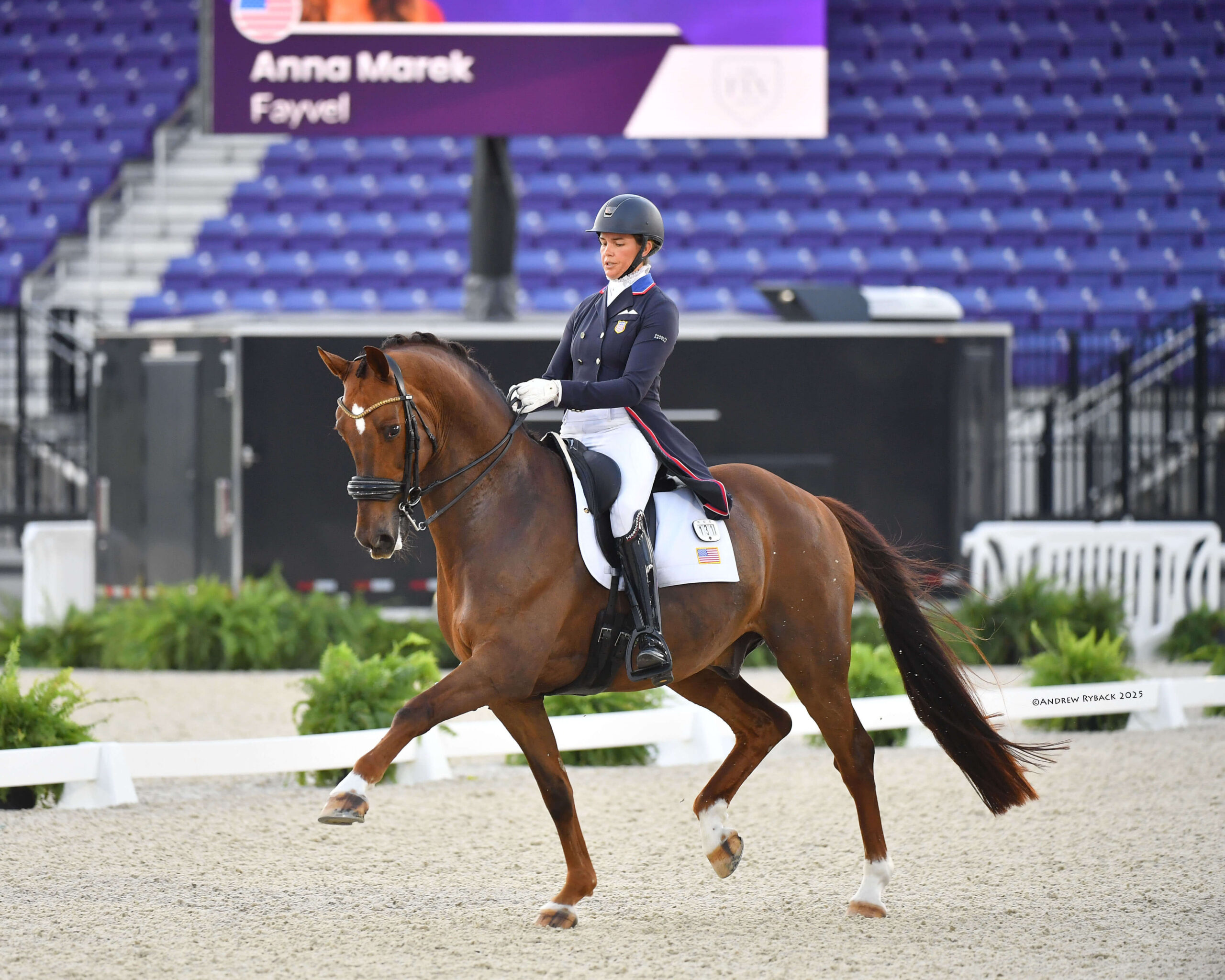 Anna Marek (USA) riding Fayvel, a 15-year-old KWPN gelding by Zizi Top x Houston owned by Cynthia Davila, were close behind in second with a score of 75.620%. In their first CDI freestyle together, Christian Simonson (USA) and Fleau de Baian, a 15-year-old KWPN stallion by Jazz x Ulft owned by Heidi Humphries, scored 72.330% for third place.