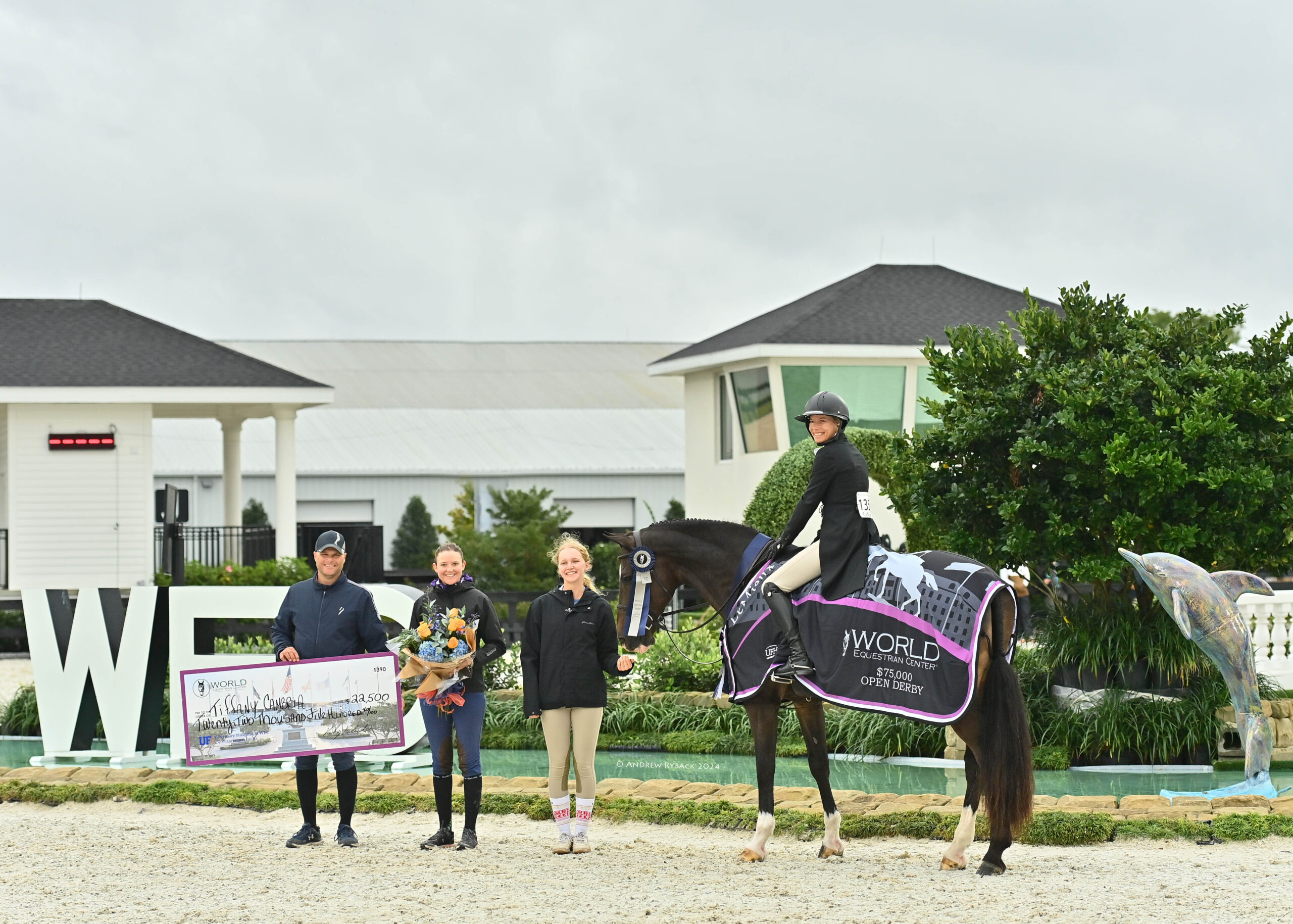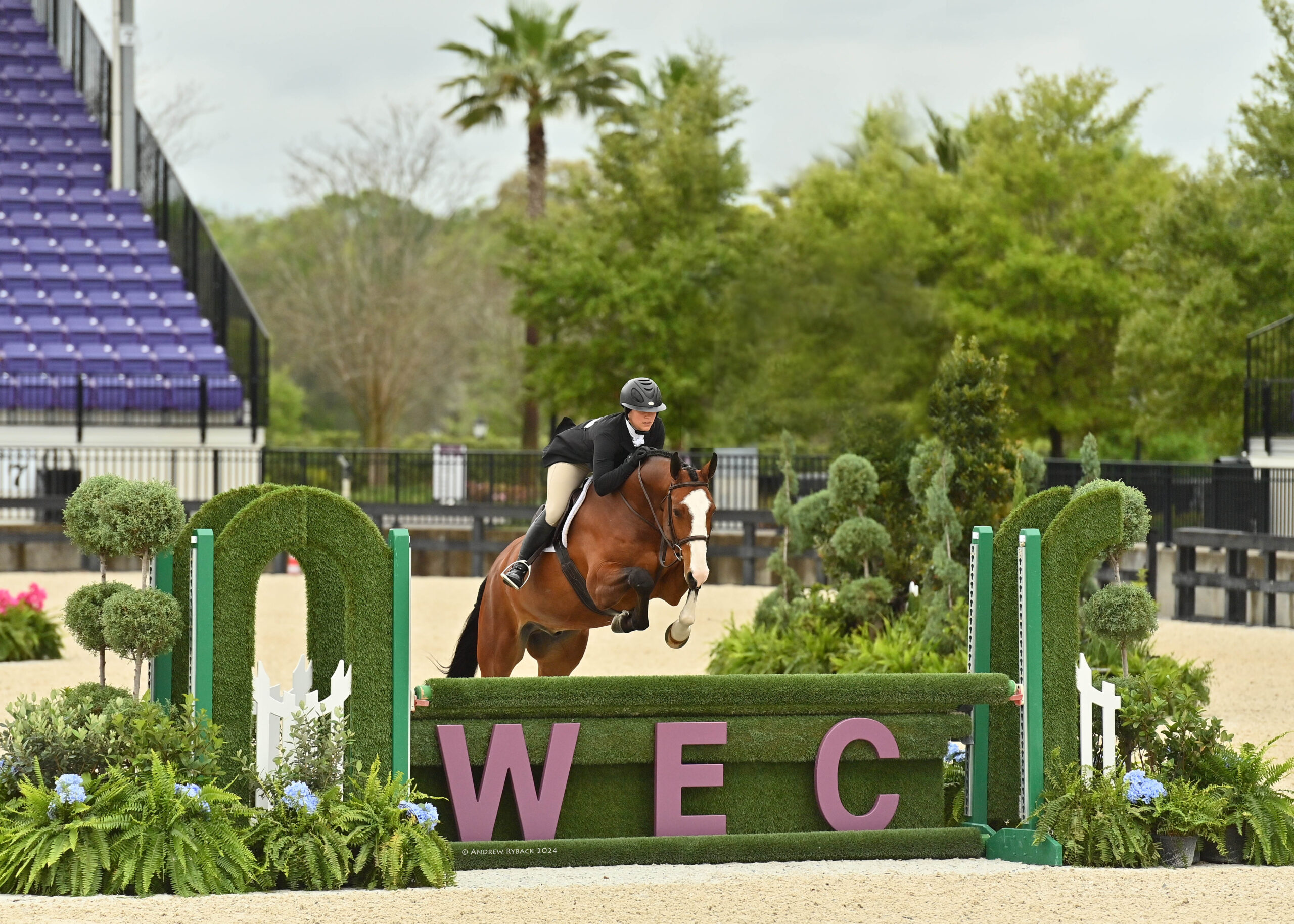Ocala, FL – The final Hunter Derby Friday of the 2024 Winter Spectacular Show Series left a lasting impression, with more than 120 magnificent hunters gracing the WEC Stadium during World Championship Hunter Rider (WCHR) week at World Equestrian Center – Ocala. Kevin Holowack designed the elegant courses for the four competitive derbies: the $75,000 Golden Ocala 3’6”-3’9” Hunter Derby, the $75,000 UF Veterinary Hospital USHJA National 3’ Open Hunter Derby, the $37,500 USHJA National 3’ Amateur Hunter Derby, and the $37,500 USHJA National 3’ Junior Hunter Derby.
