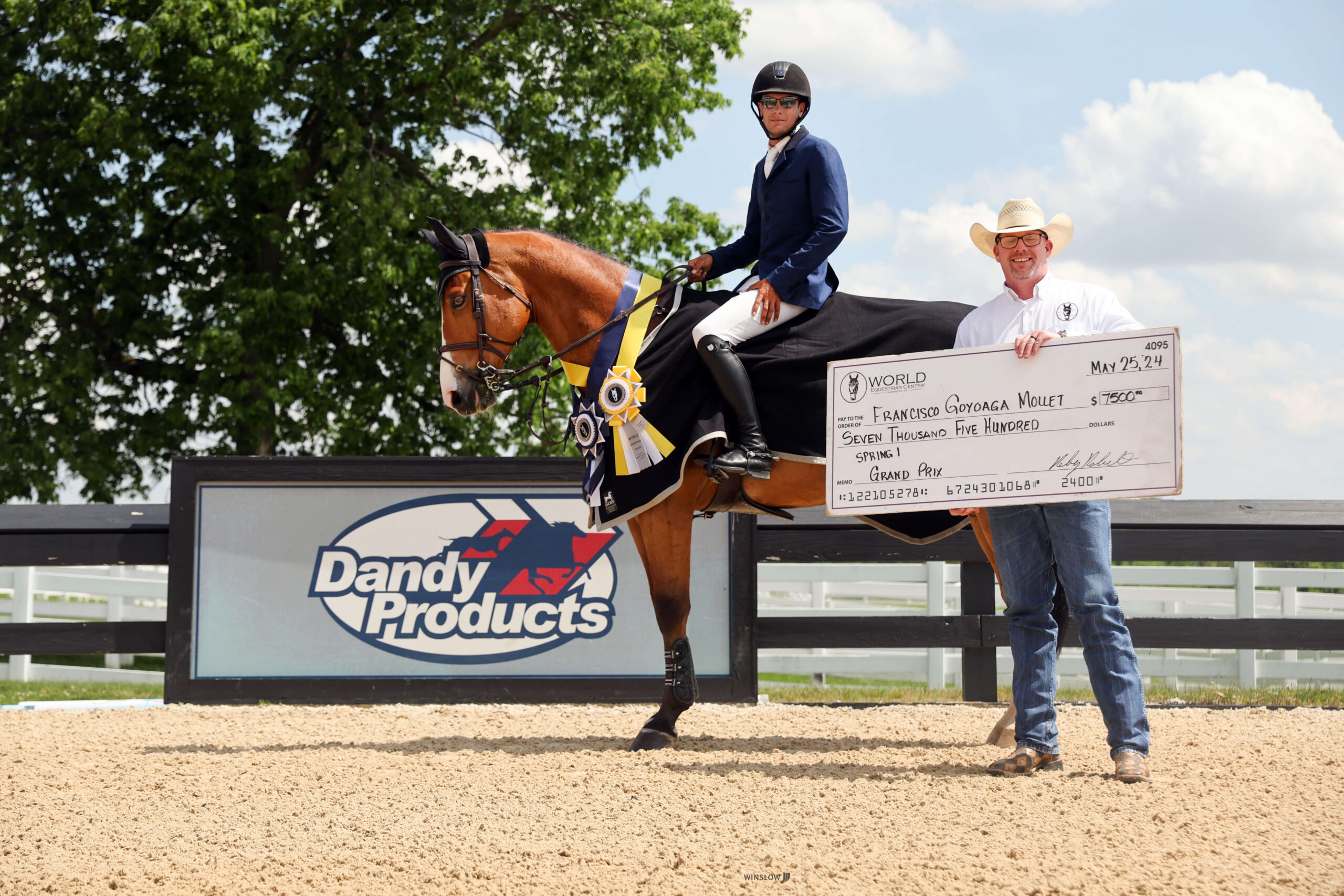 Wilmington, OH – Another picturesque spring day set the scene for the highlight event of the week, the $25,000 Dandy Products Grand Prix. A talented field of horse-and-rider combinations showcased their skills over Bobby Murphy’s (USA) technical tracks, but it was Francisco Goyoaga Mollet (ESP) who forged two new successful partnerships to secure podium finishes.