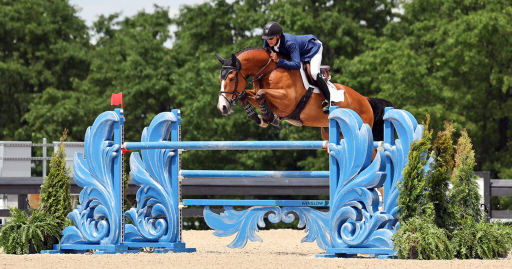Mollet has enjoyed his time riding outside at World Equestrian Center – Wilmington. “I’ve shown here indoors in the winter, but this is my first time competing outside,” he shared. “I think the arena is great. The footing is fantastic, there is great material and beautiful jumps. The pond feature in the middle of the ring makes it feel really fancy. It’s a fantastic show.”