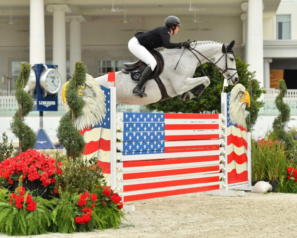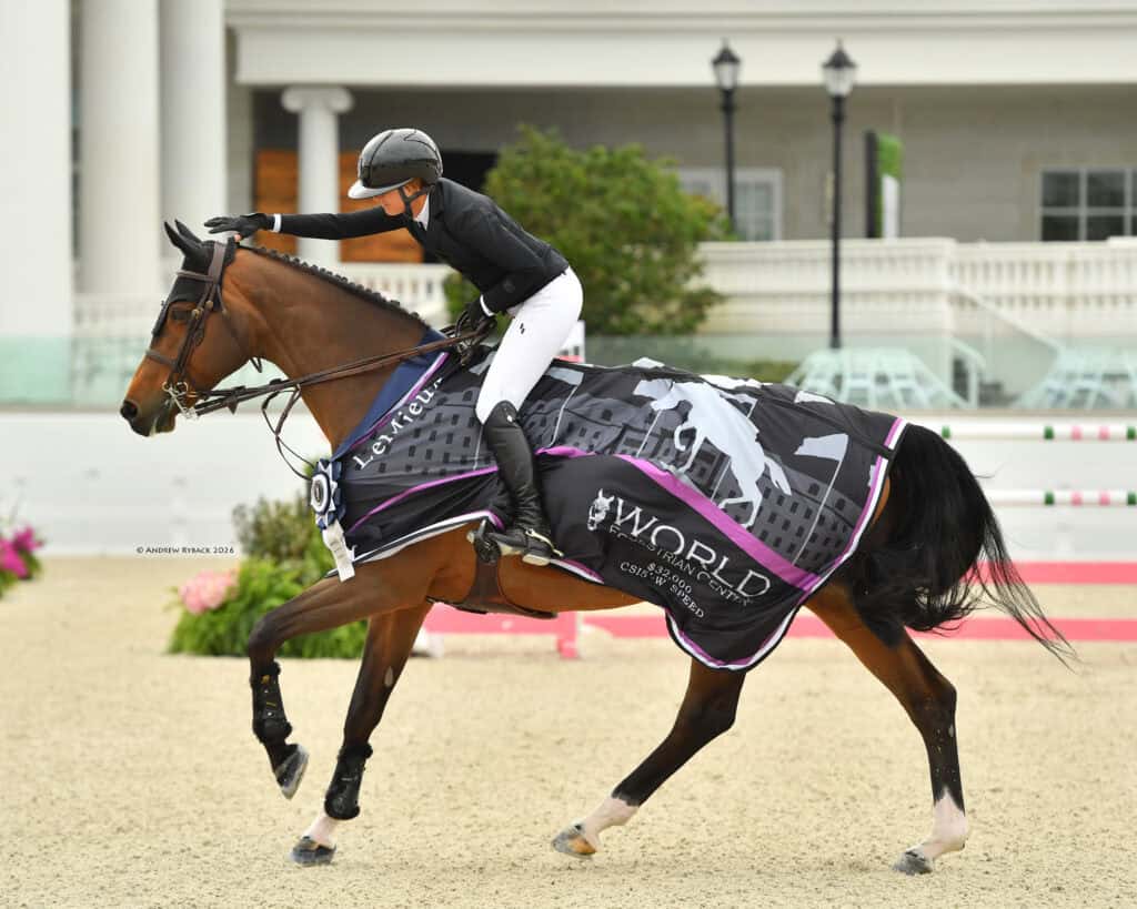 Ballard and “Game Ball” rode out of the 32nd spot in the order of 38 entries over a course designed by Bernardo Costa Cobral (POR). They finished clear in 62.69 seconds for the win. They were chasing a leading time of 63.63 seconds held by Hunter Holloway (USA) and Pepita Con Spita, a 15-year-old Westphalian mare (CSP Con Spirit x Come On) owned by Hays Investment Group. The pair would finish in second place. Third place went to last year’s winners, Nina Mallevaey (FRA) and My Clementine, an 11-year-old Irish Sport Horse mare by O.B.O.S. Quality x Kashmir van Schuttershof owned by Rein Family LLC and Tara Dow-Rein. The duo posted a time of 65.58 seconds.