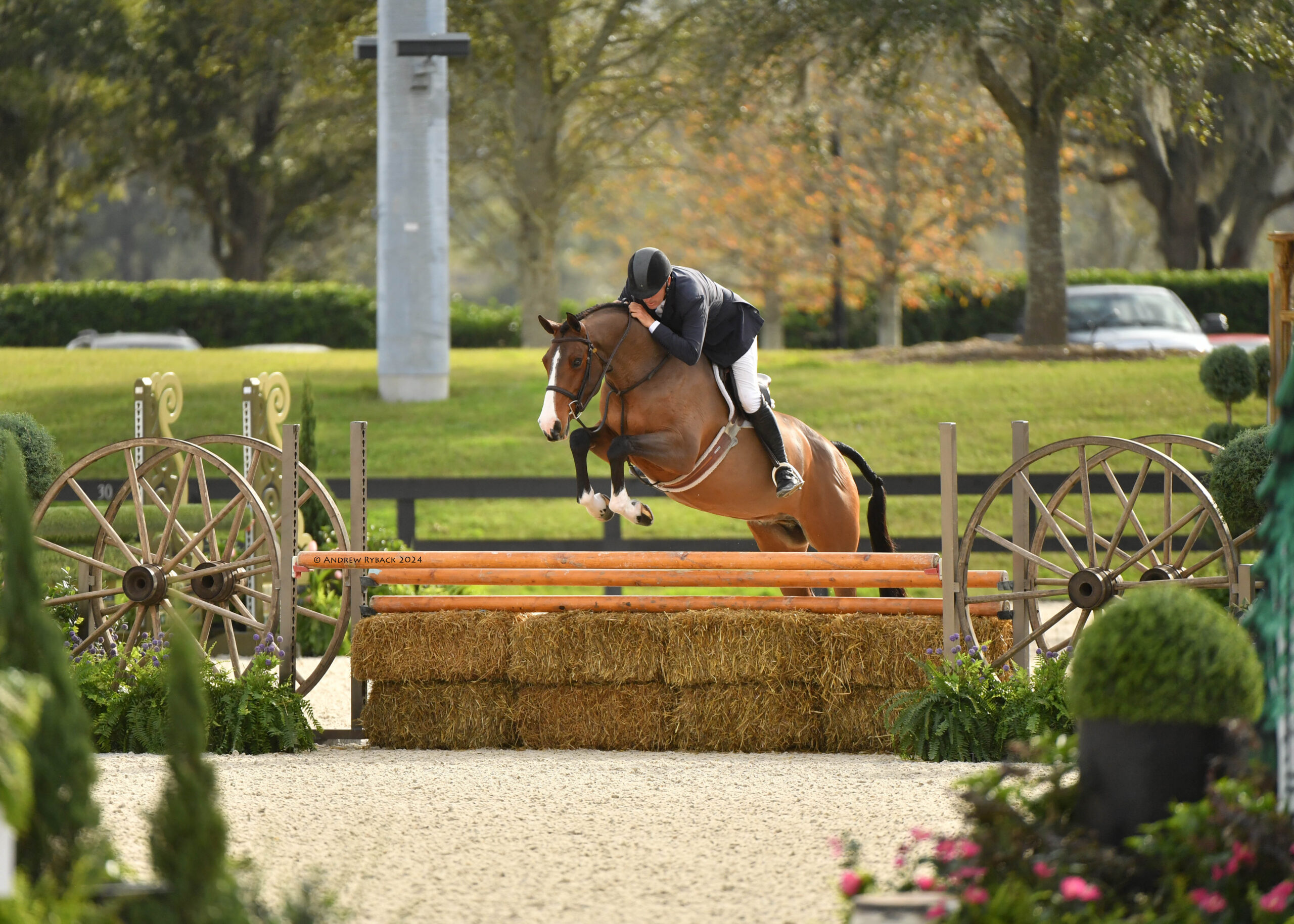 Ocala, FL – Nearly 90 stunning hunters graced the WEC Stadium during Week IV of the 2024 Winter Spectacular Show Series at World Equestrian Center – Ocala. Keith Bollotte crafted the natural and open tracks for the three hunter derbies: $20,000 Golden Ocala 3’6”-3’9” Hunter Derby, $15,000 UF Veterinary Hospital 3’ Open Hunter Derby, and $15,000 USHJA National 3’ Jr/Am Hunter Derby.