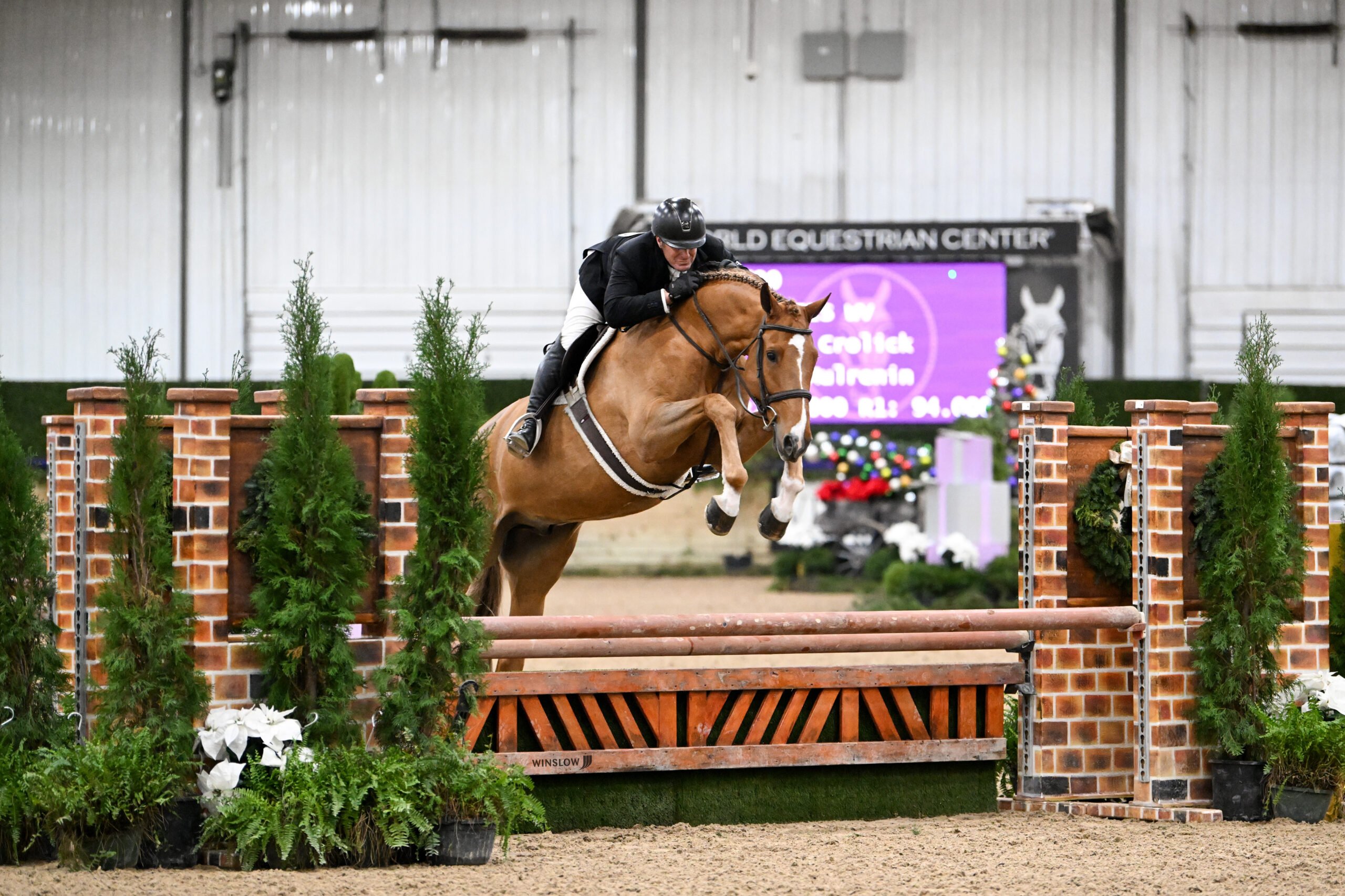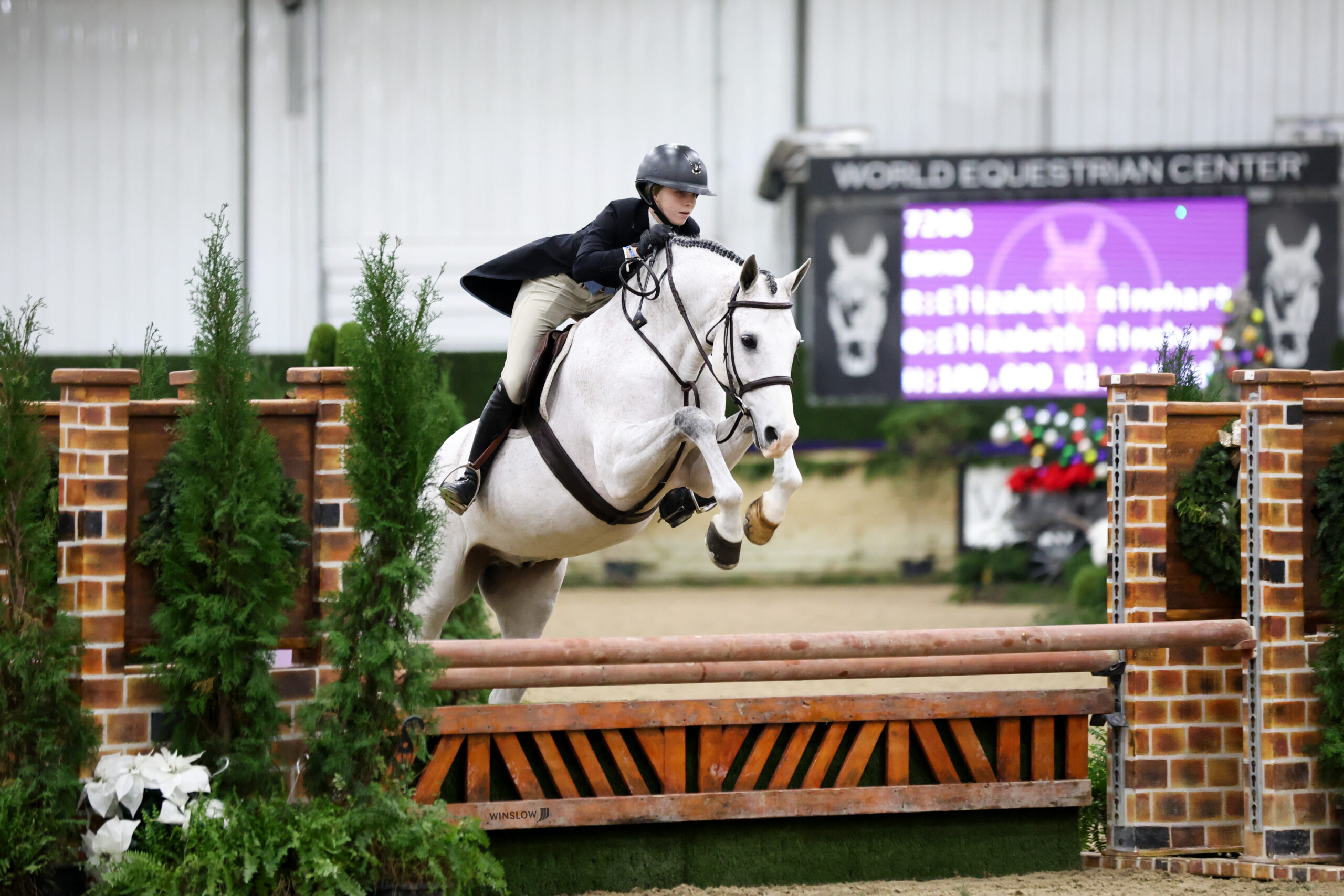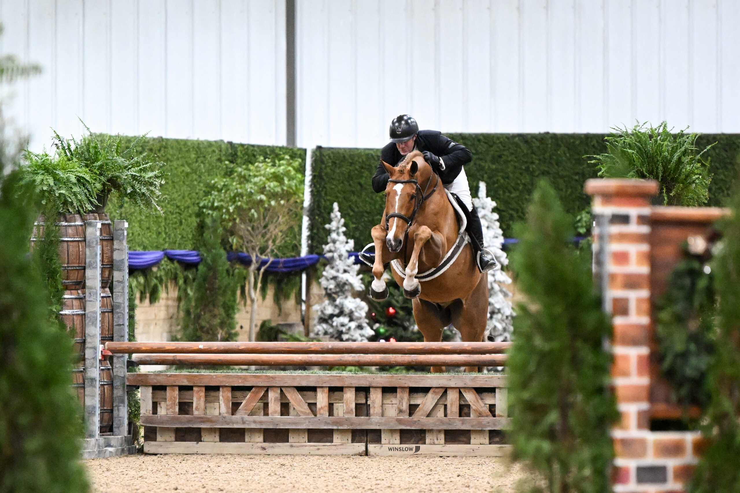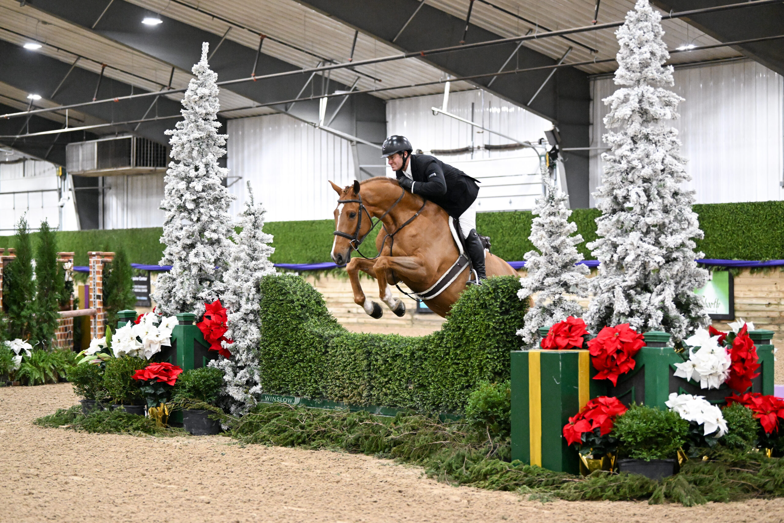 Wilmington, Ohio – The R+L Arena at World Equestrian Center – Wilmington was decorated as a winter wonderland for a group of 27 esteemed hunter athletes for the $15,000 Ohio State Galbreath Equine Center USHJA National Open Hunter Derby with tracks designed by Bobby Murphy.