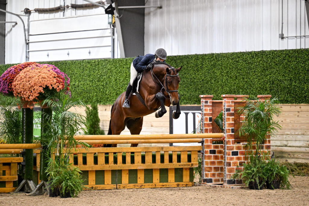 Iris Perlioni marked her first derby win Friday afternoon of Fall Classic 5, besting a field of 21 horse-and-rider combinations aboard her own Amour (Tinarana Gold Wave x Granbeg Lass) in the $10,000 Merck USHJA National Non-Pro Hunter Derby.