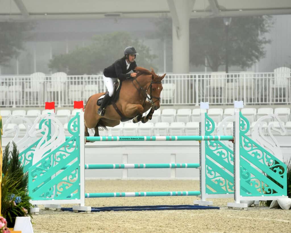 Ocala, FL – A foggy Florida morning set the stage for Friday’s featured Jumping event, the $32,000 Juniper Landscaping Grand Prix Qualifier CSI2*. Thirty-two horse-and-rider combinations came forward to contest the class, but in the end, it was Jad Dana (LBN) who proved unbeatable aboard Burr Associates, Inc.’s Leonidas.