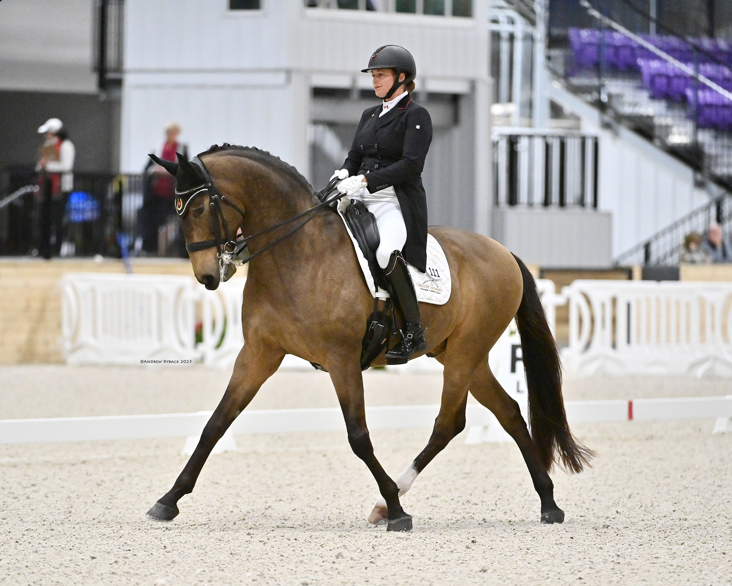Denielle Gallagher (CAN) and Come Back De Massa, a 13-year-old Lusitano gelding by Galopin de la Font x Quixote SDS she owns with Ellen Lazarus, scored 69.345% for third place.