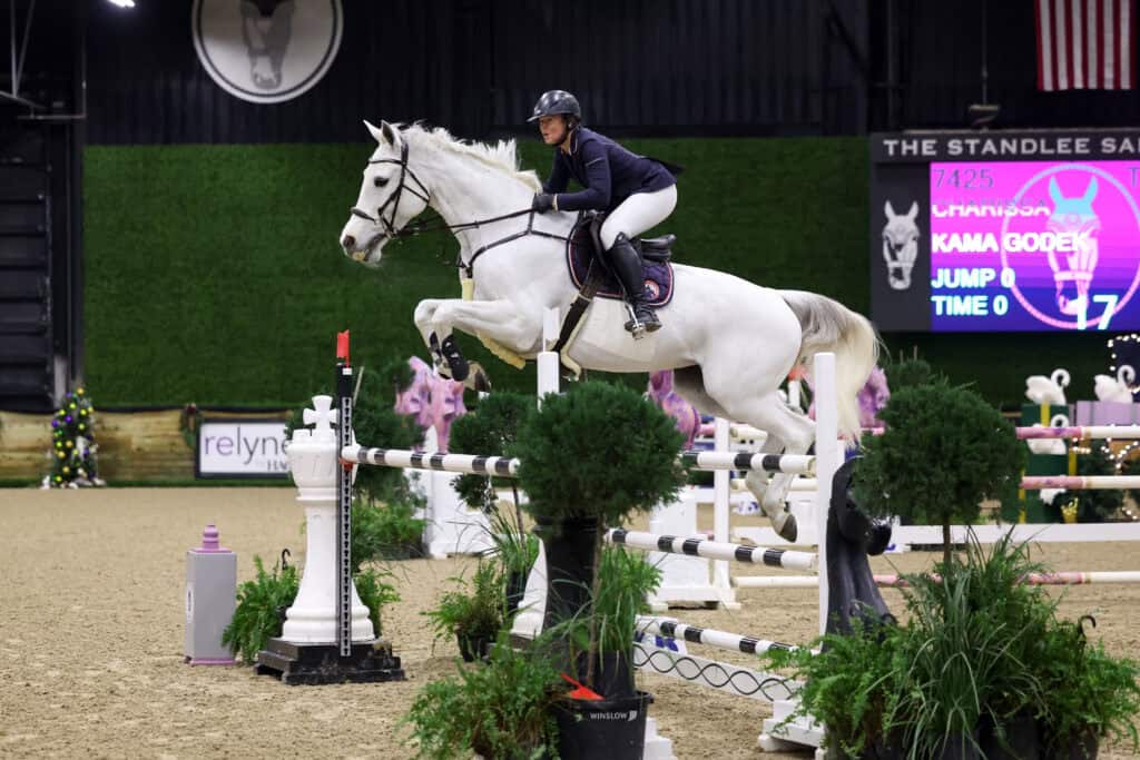 Wilmington, Ohio – The Standlee Sanctuary at WEC – Wilmington, transformed into a winter wonderland, set the scene for the first $30,000 Grand Prix of the 2026 Winter in the Midwest Series. A competitive jump-off followed, but it was no match for Kama Godek and her seasoned mare, Charissa (Clarimo x Urmel VI).