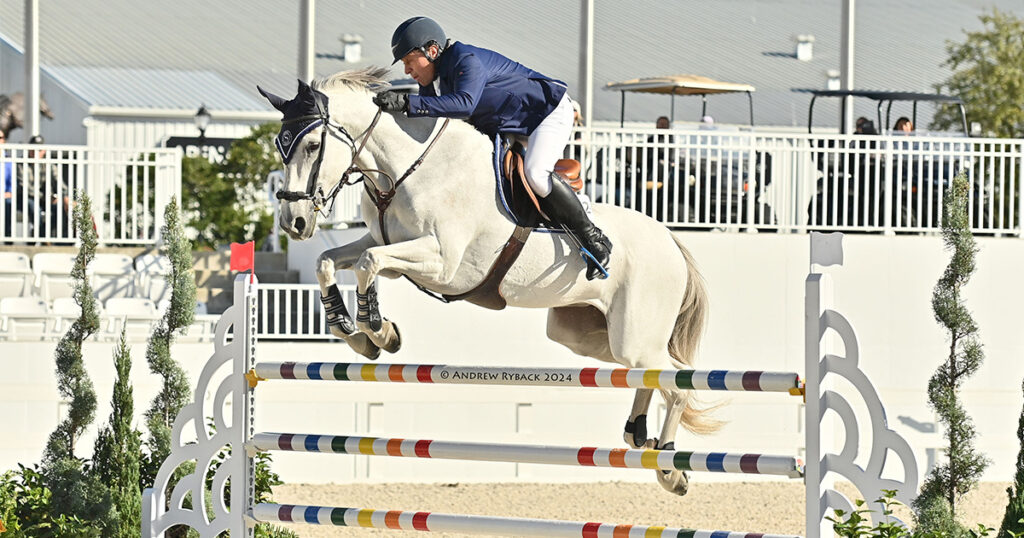 Ocala, FL – The highly anticipated 2024 Winter Spectacular Show Series is underway at World Equestrian Center – Ocala. The $24,000 C. Jarvis Insurance Welcome Prix kicked off elite competition as a field of 20 horse-and-rider combinations competed over a complex track set by FEI Level IV course designer Steve Stephens (USA) that utilized brand new fences and stunning décor. Luis Sabino Goncalves (POR) showcased his speed once again with Sigma Stables LLC’s Vick Du Croisy (Lord Carthago x Merveille Ducroisy), and made their start to the winter circuit a winning one.