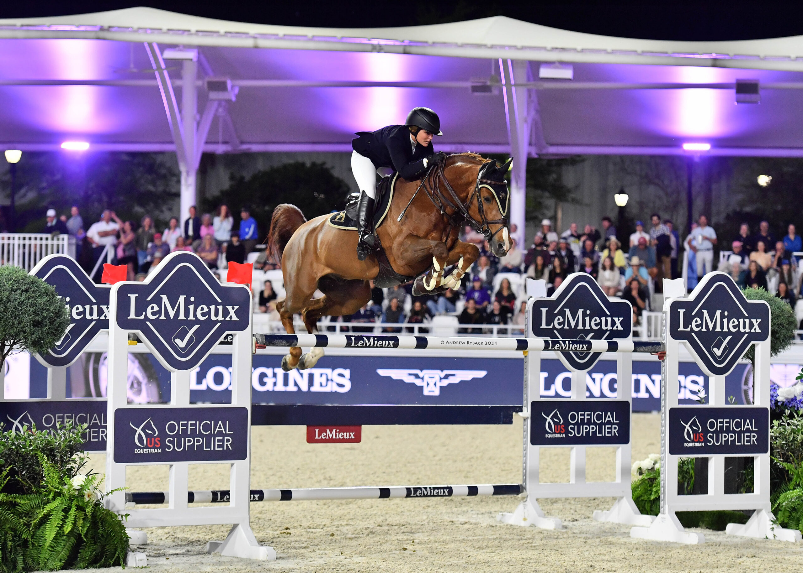 “Really a fantastic performance of Leone Jei tonight,” said Fuchs of the 12-year-old Dutch Warmblood gelding (Baltic VDL x Corland) owned by Adolfo Juri. “He jumped fantastic both rounds; he felt really good. He was really working with me, and I felt like he enjoyed both rounds a lot.”