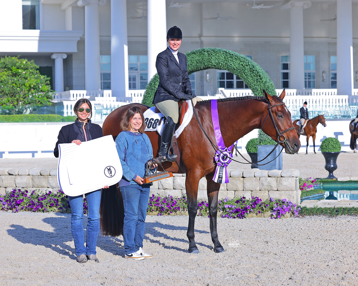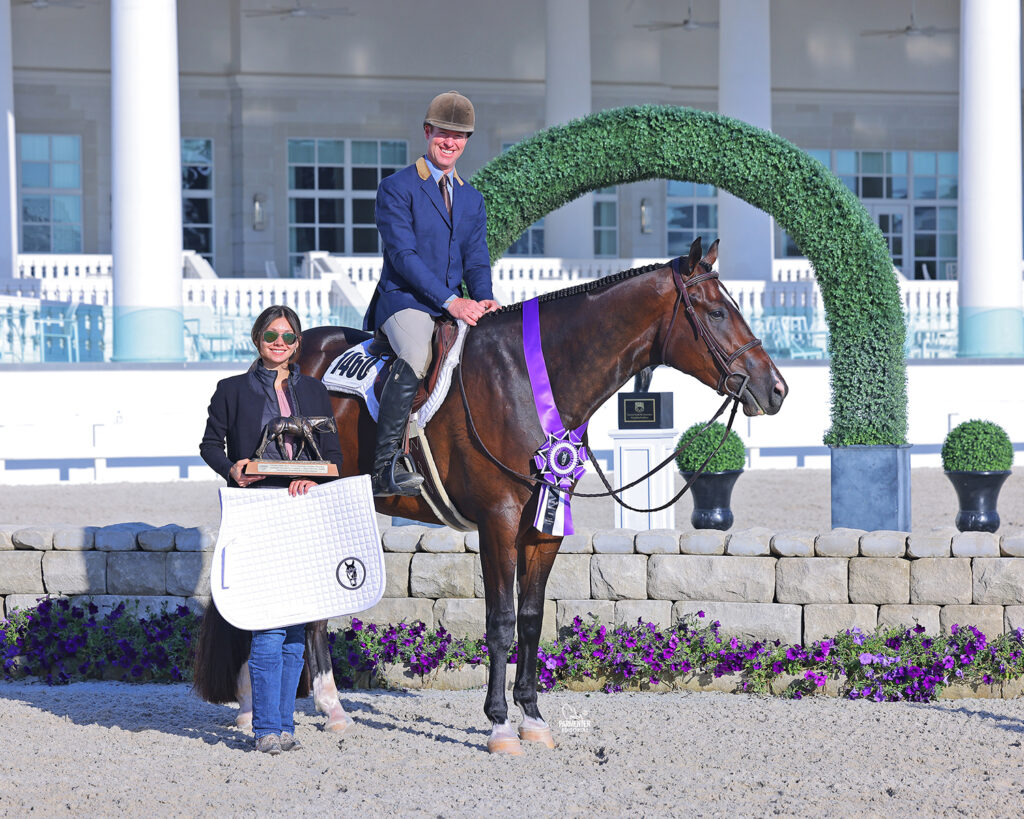 Early Thursday morning at WEC – Ocala, 16 riders stepped into the WEC Grand Arena to kick off the day with the $4,000 NSBA 3-Year-Old Open & Limited Hunter Under Saddle. Keith Miller took top honors aboard the 2022 stallion The Company You Keep (All Time Fancy x In Good Company), owned by Madeleine Bayless.