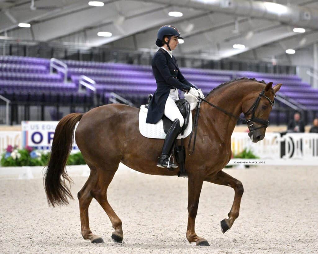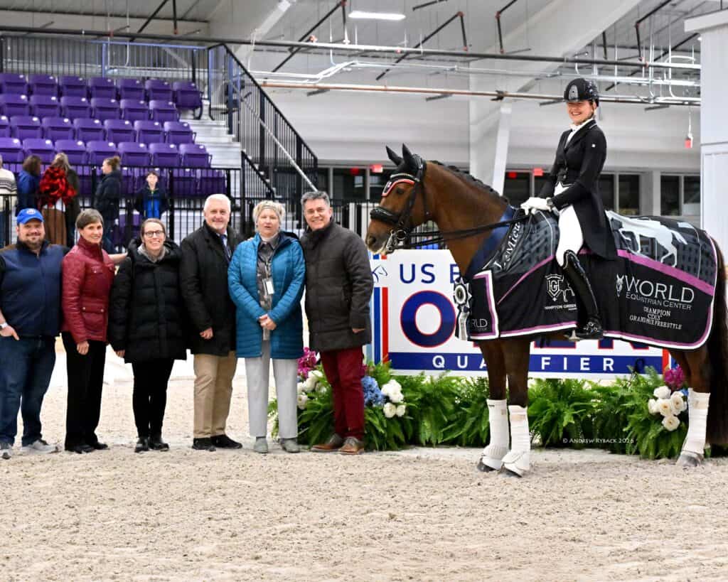 January 31, 2026 – Ocala, FL – The highlight of the WEC January Dressage CDI3*, presented by Hampton Green Farms was held on Saturday, January 31, 2026, at World Equestrian Center – Ocala (WEC). The Grand Prix Freestyle CDI3* saw Charlotte Osborne (GBR) and Fruhlingszauber, an 18-year-old Austrian Warmblood gelding by Fortino x Rubinstein I owned by Lisa Carol, strut their way to victory.