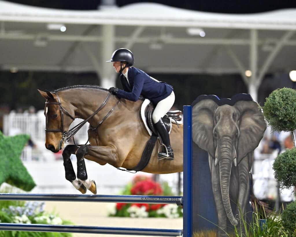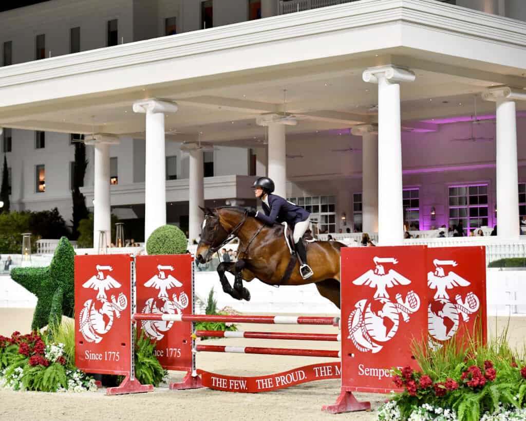 Ocala, FL – A beautiful, sun-soaked Florida day set the stage at World Equestrian Center – Ocala (WEC) as nearly 90 of the nation’s top junior athletes contested the 2026 WEC Premier Equitation Cup Championship, presented by the Marine Corps Heritage Foundation, sponsored by J.P.Morgan, and powered by Gary Yeomans Ford. The evening delivered a true championship atmosphere, highlighted by appearances from the Parris Island Marine Corps Band and Cpl. Opha Mae II, the official mascot of Marine Corps Recruit Depot Parris Island. The prestigious competition followed a traditional three-phase equitation format, with the possibility of a work-off.