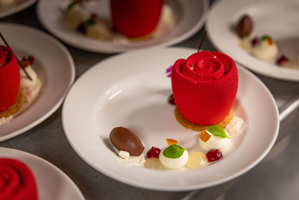 The chefs delivered an exquisite menu paired with selections from Palm Bay International by Master Sommelier Roland Micu. The Equestrian Hotel’s Executive Chef Jonathan Martini partnered with Junior Chef Michael Seegobin to start the night with a Blue Crab Caviar amuse, followed by Pitmaster Rashad Jones’ Land & Sea Salad Medley. The second course of Gochujang Glazed Salmon was prepared by Chef Esther Choi, followed by Chef Marc Murphy’s Tomato Cavatelli. Chef Lorena Garcia presented her take on filet mignon with Lomito Encebollado, and the meal ended on a sweet note with Chef Yohann Le Bescond’s salute to the holidays with his Ginger & Cranberry Festival.