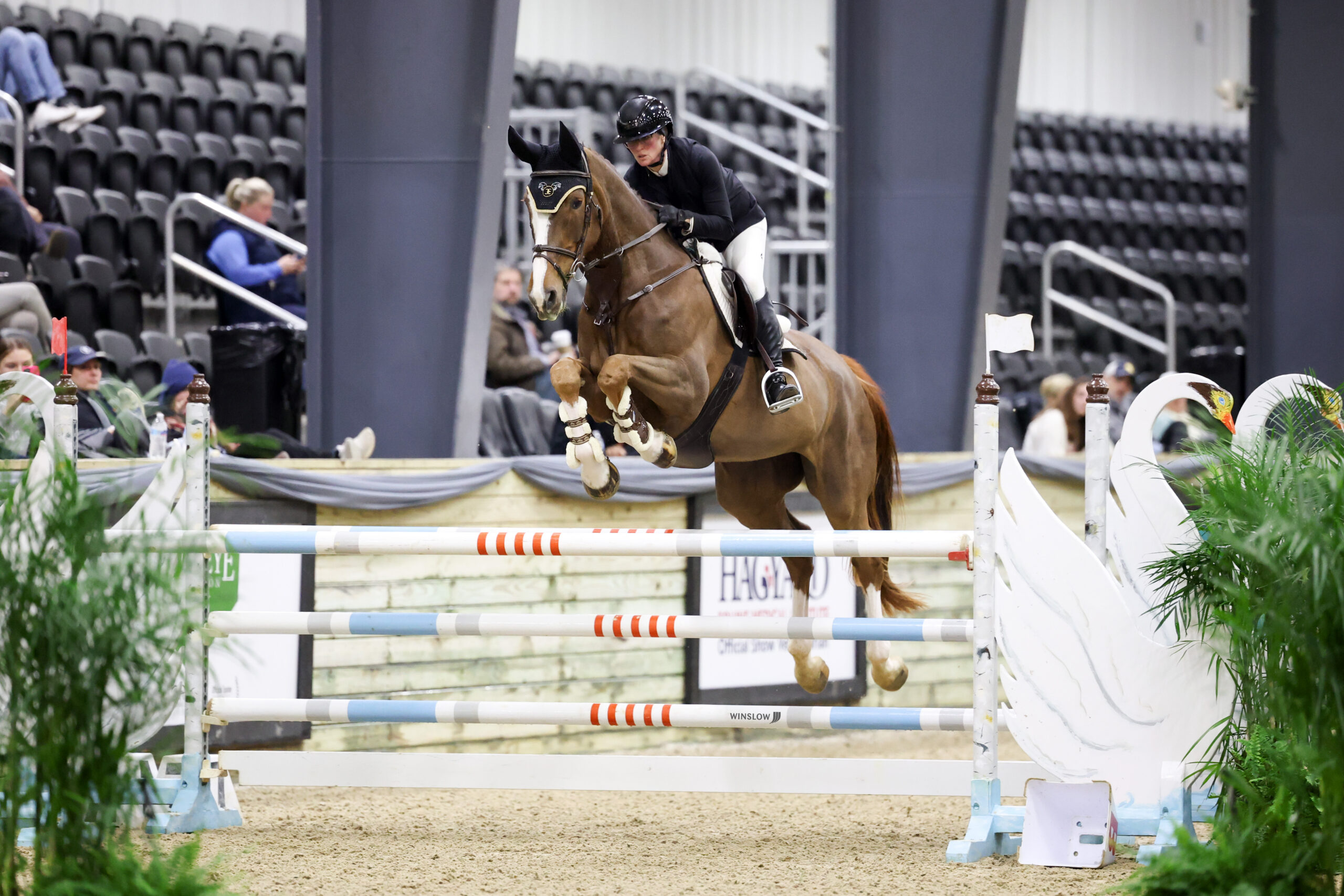 Wilmington, Ohio – Rosalie Midyette (USA) made her first trip to World Equestrian Center – Wilmington (WEC) one to remember as she raced to the win in the $30,000 CWD Grand Prix of Winter Classic 10. Peter Grant (CAN) set the stage for the field of athletes in the Standlee Sanctuary where five riders found the key to the jump-off.