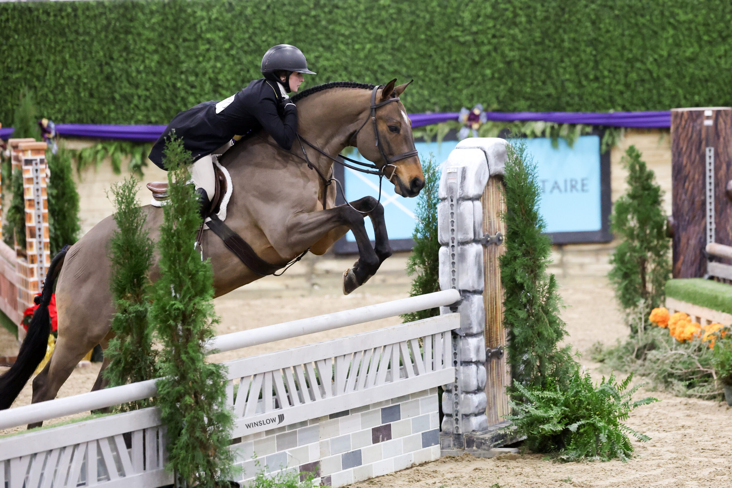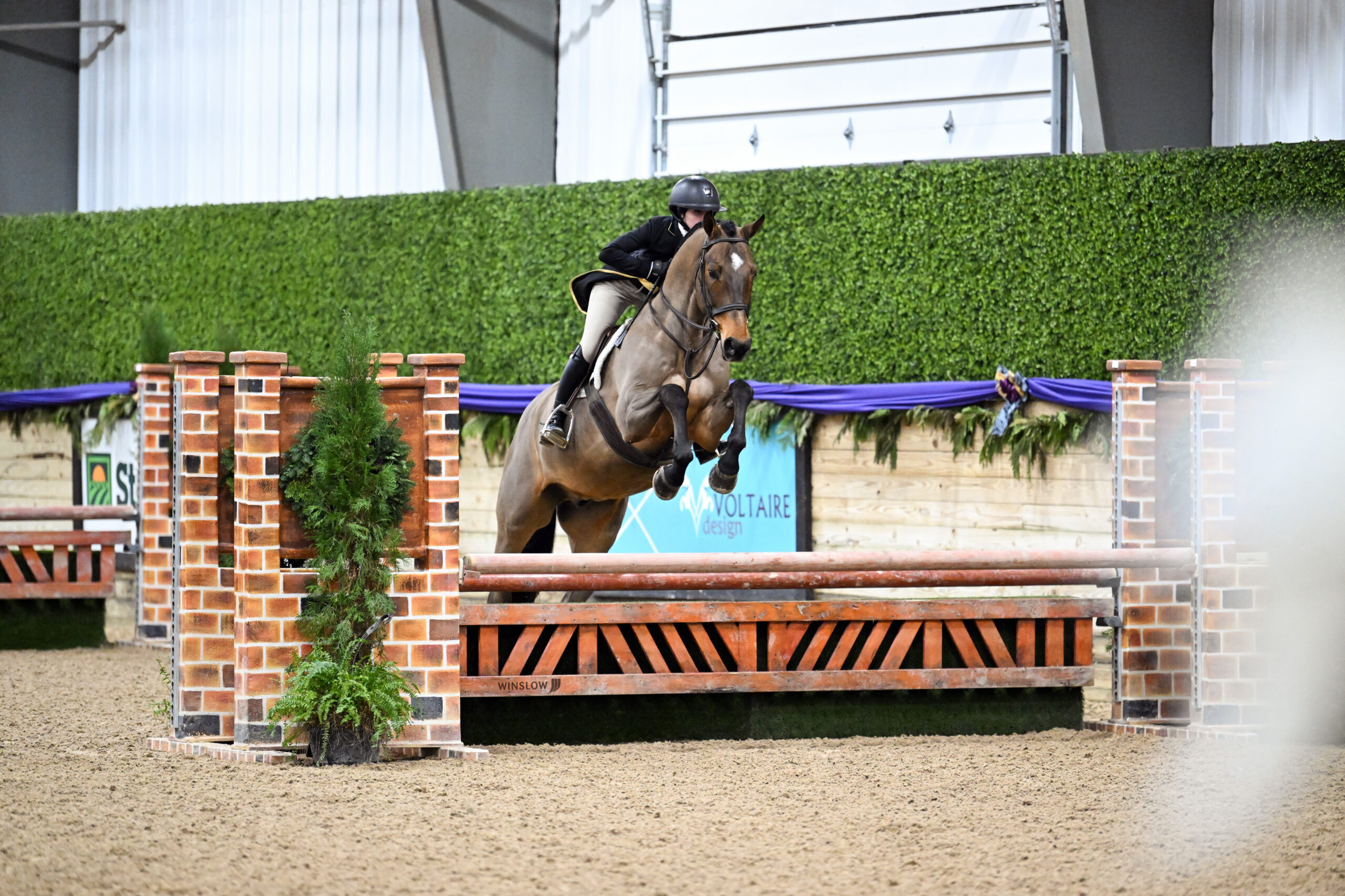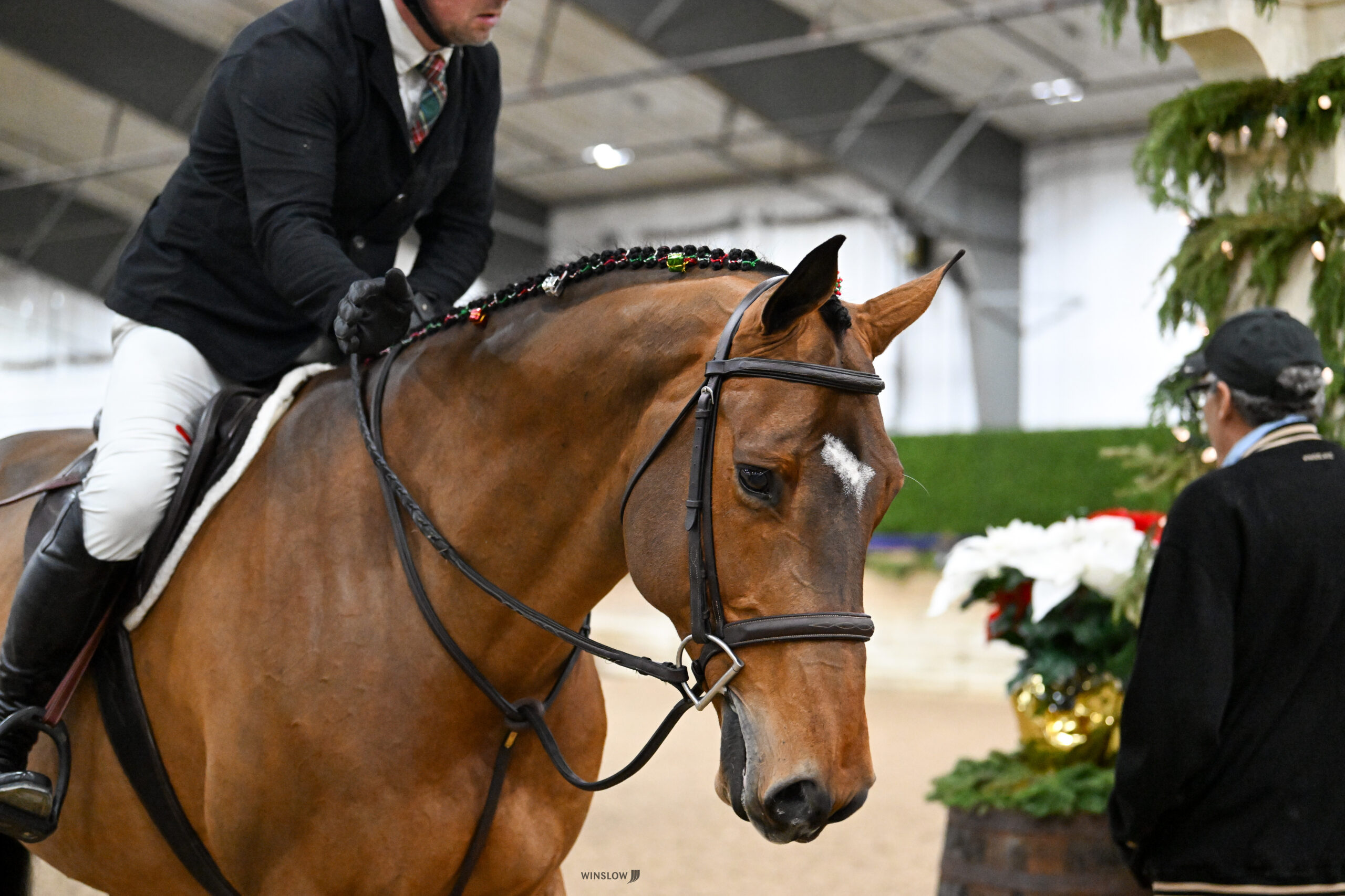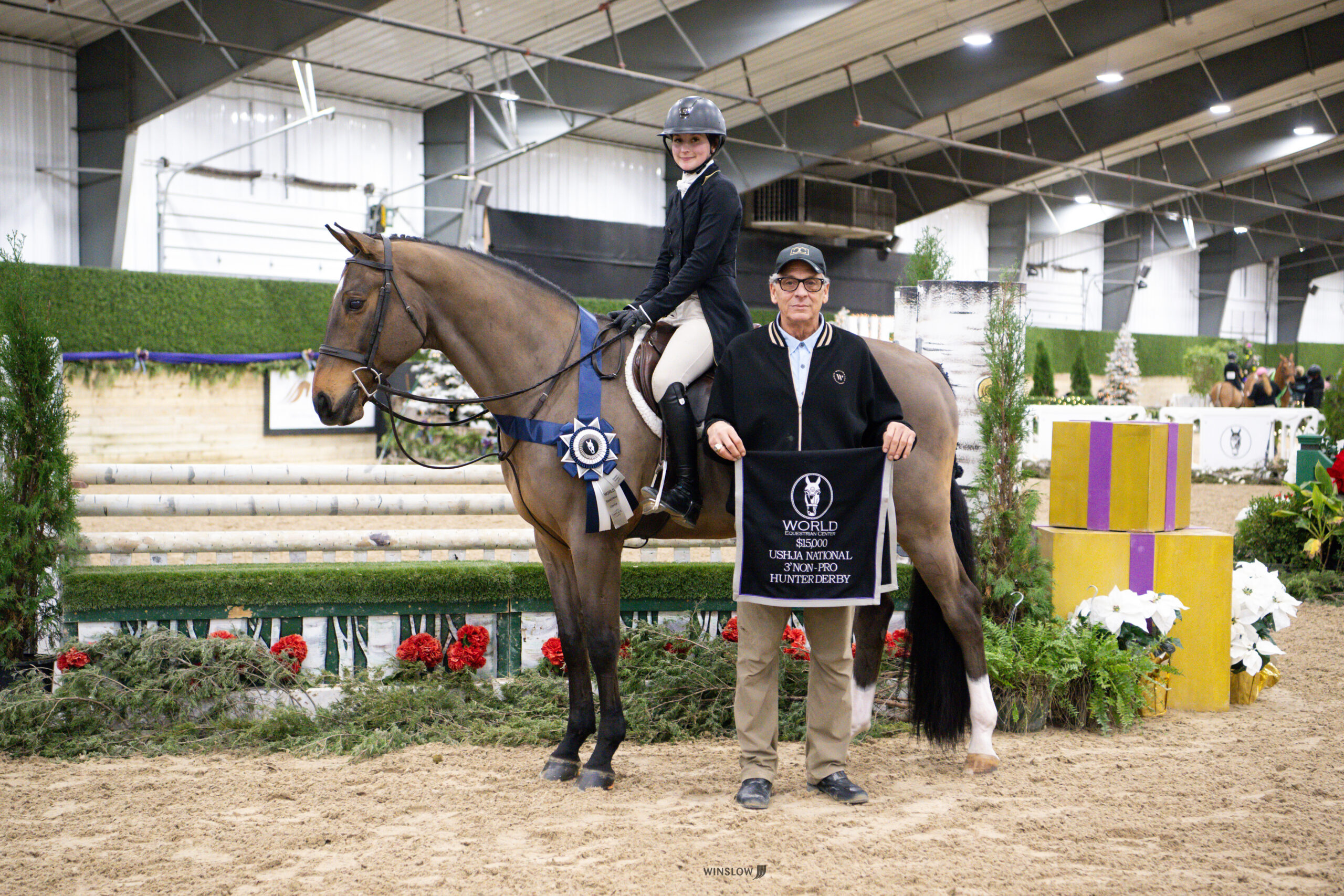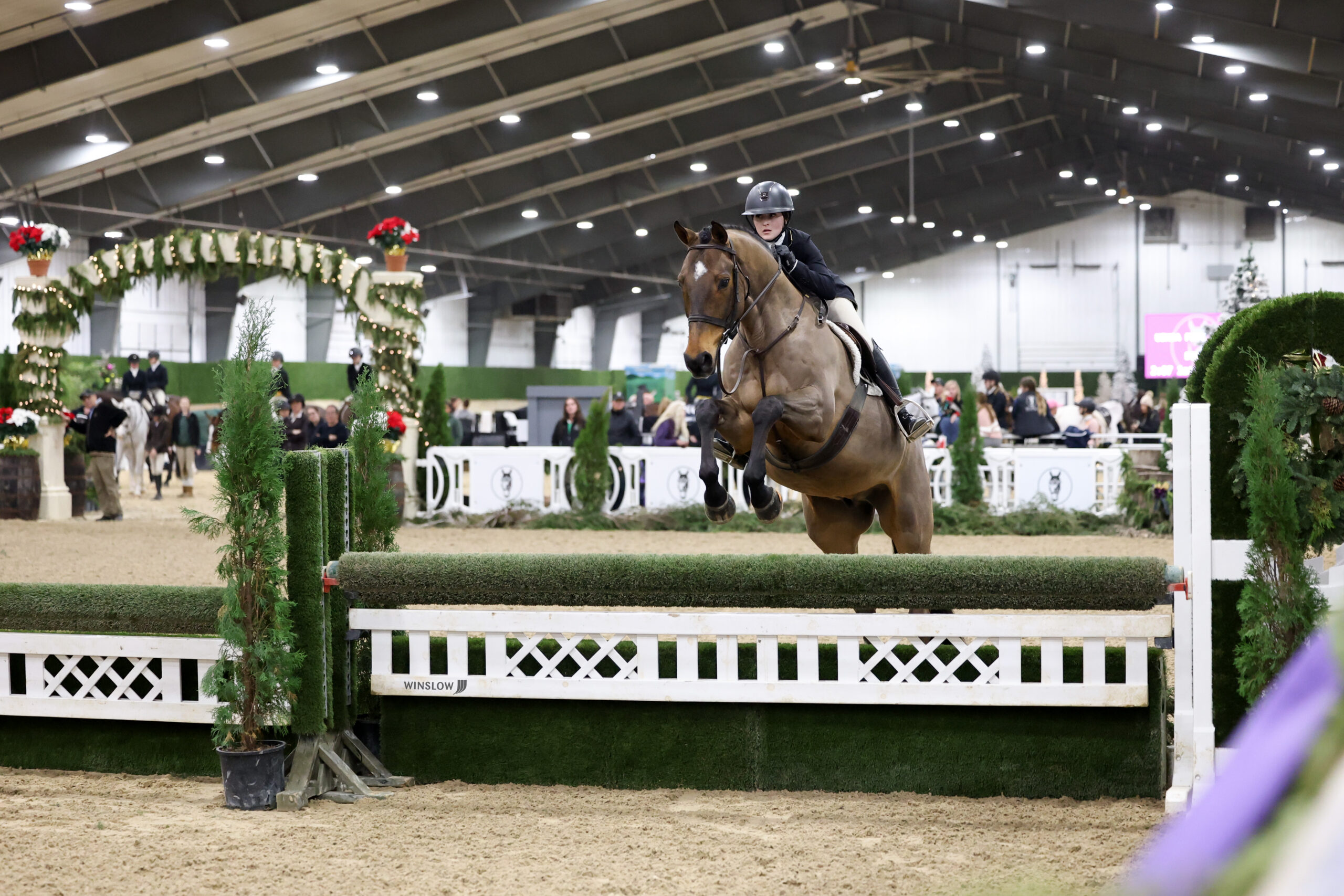 Wilmington, Ohio – The R+L Arena at World Equestrian Center – Wilmington welcomed 15 polished horse-and-rider combinations for the $15,000 USHJA National Open Hunter Derby of Christmas in the Midwest. Joe Carnicom crafted the tracks that allowed riders to showcase their rideability and brilliance.