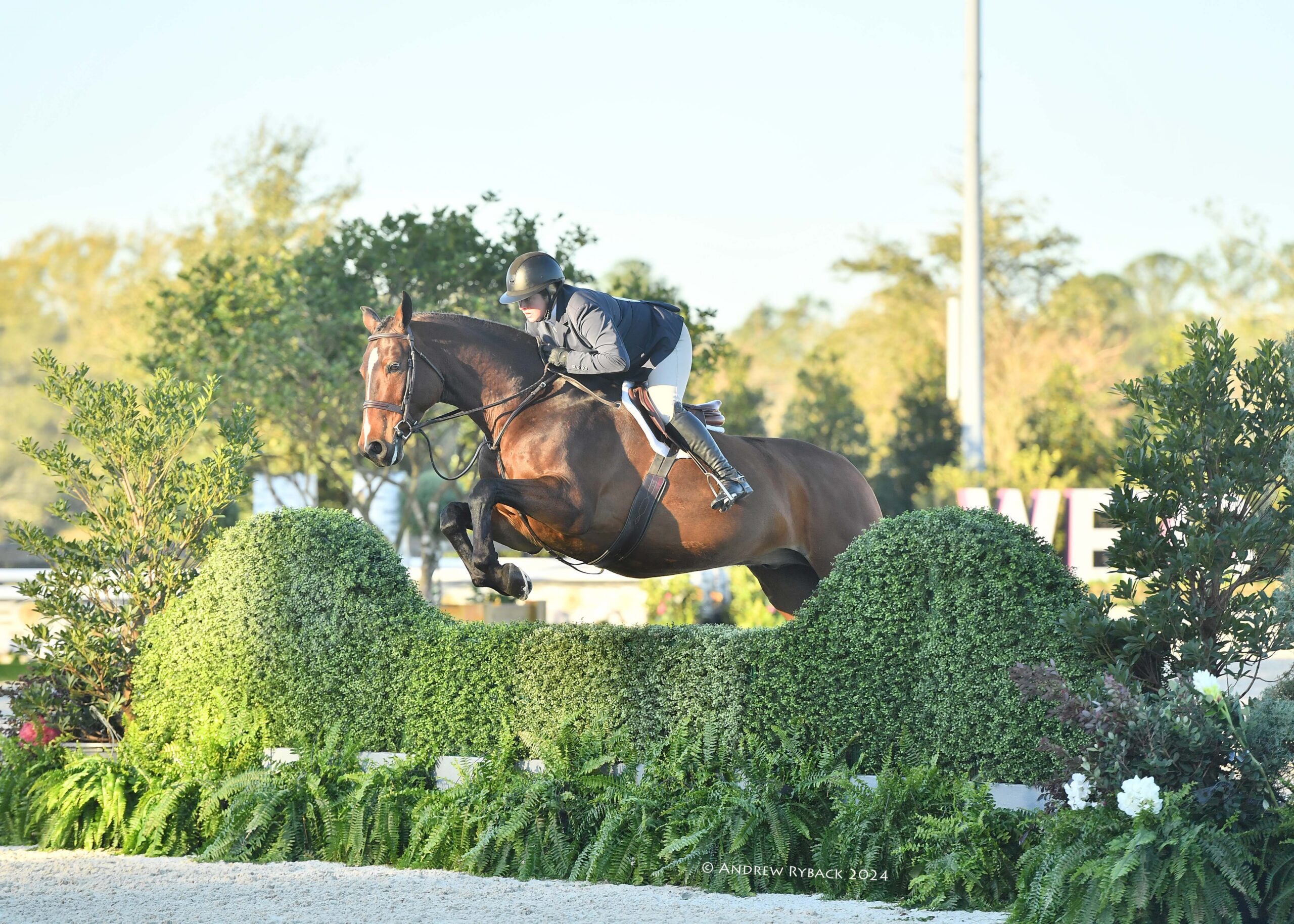 Hunter 1 boasted a course adorned with breathtaking obstacles and exquisite décor, leaving Schaefer thoroughly impressed. “I made the mistake of watching a few 3’ derby rounds, and I was afraid I was going to go off course,” she joked. “I loved the track. It was a lot of singles, and open space so you could gallop. I was able to just float around without getting too caught up in the numbers.”