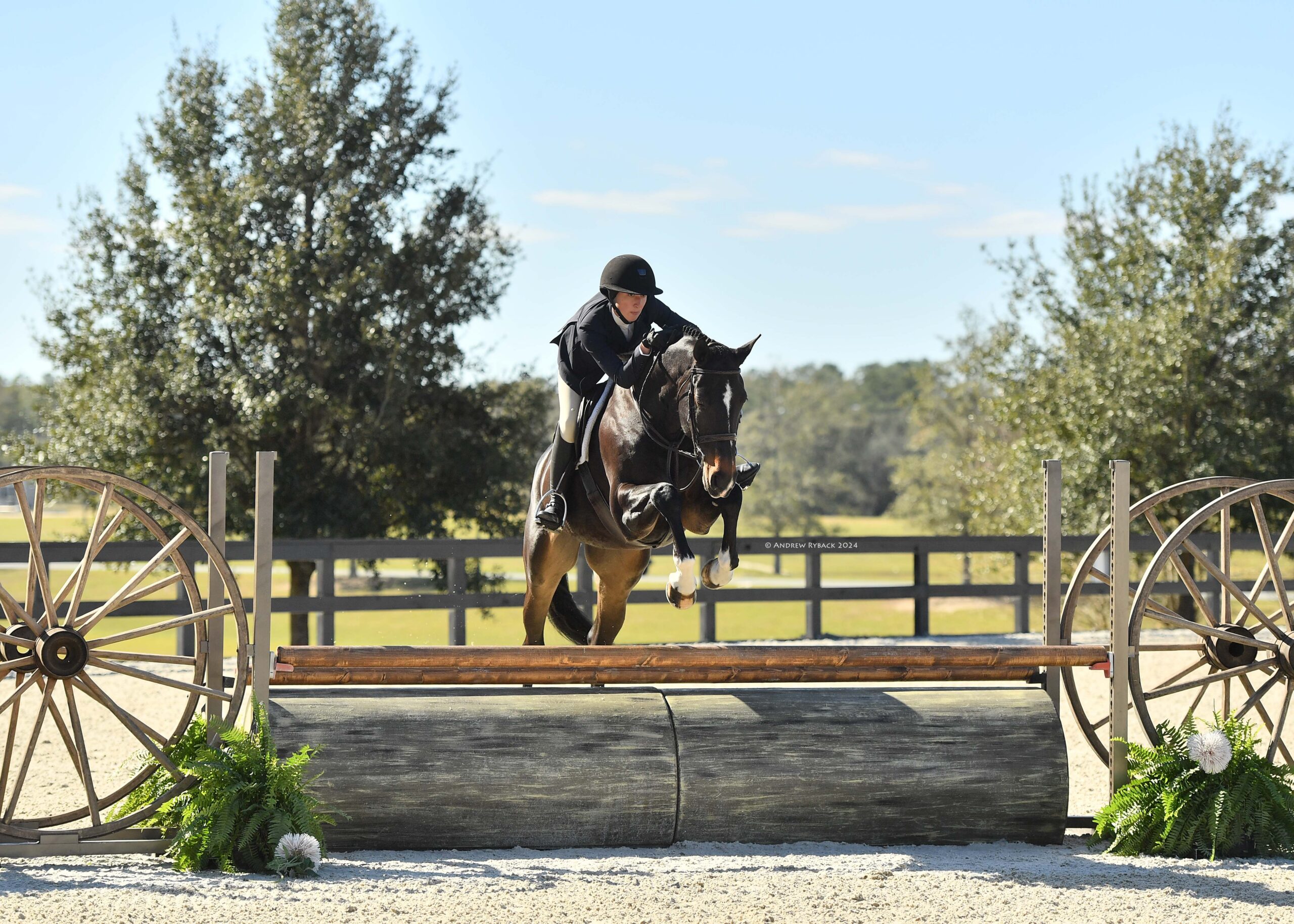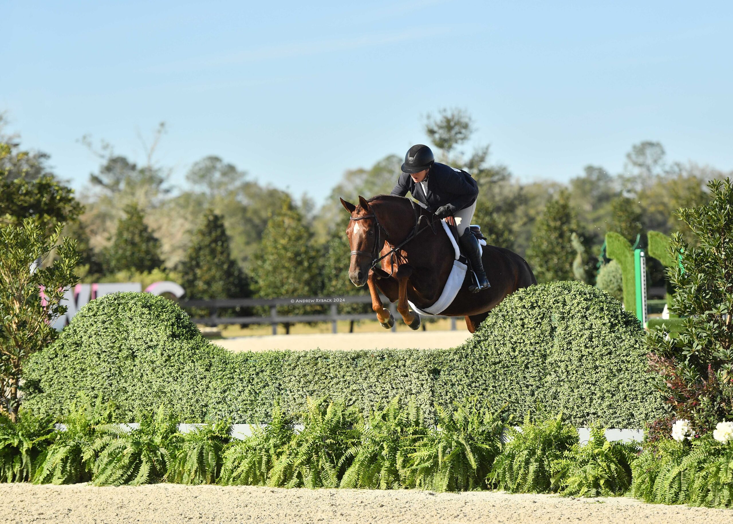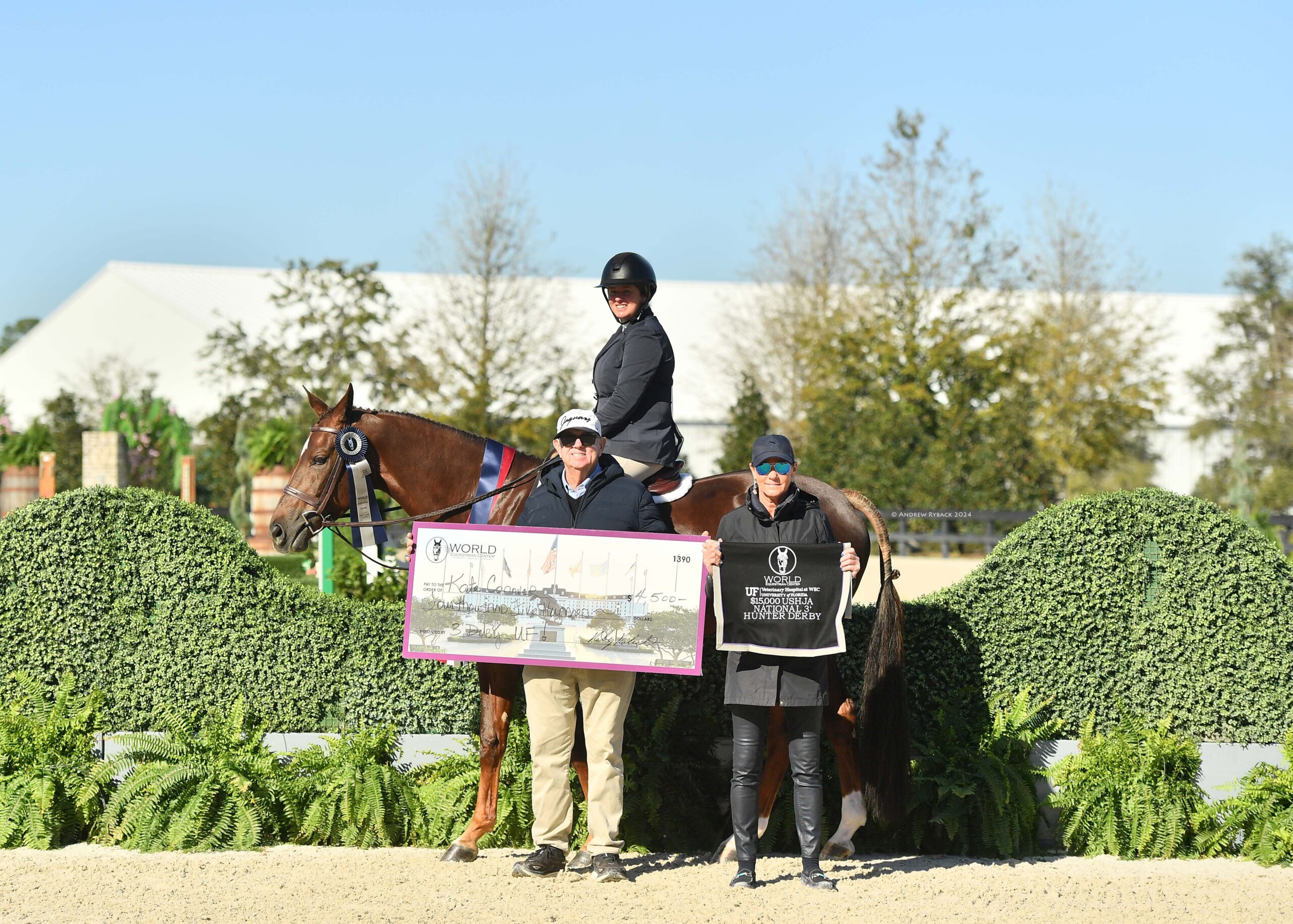 Ocala, FL – Over 70 jaw-dropping hunters took to the beautifully designed Hunter 1 arena this morning for the first Hunter Derby Friday of the 2024 Winter Spectacular Show Series at World Equestrian Center – Ocala. Crafted by course designer Tom Hern, the magnificent tracks garnered praise from competitors across the three derbies: the $20,000 Golden Ocala 3’6”-3’9” Hunter Derby, the $15,000 UF Veterinary Hospital USHJA National 3’ Open Hunter Derby, and the $10,000 USHJA National 3’ Jr/Am Hunter Derby.