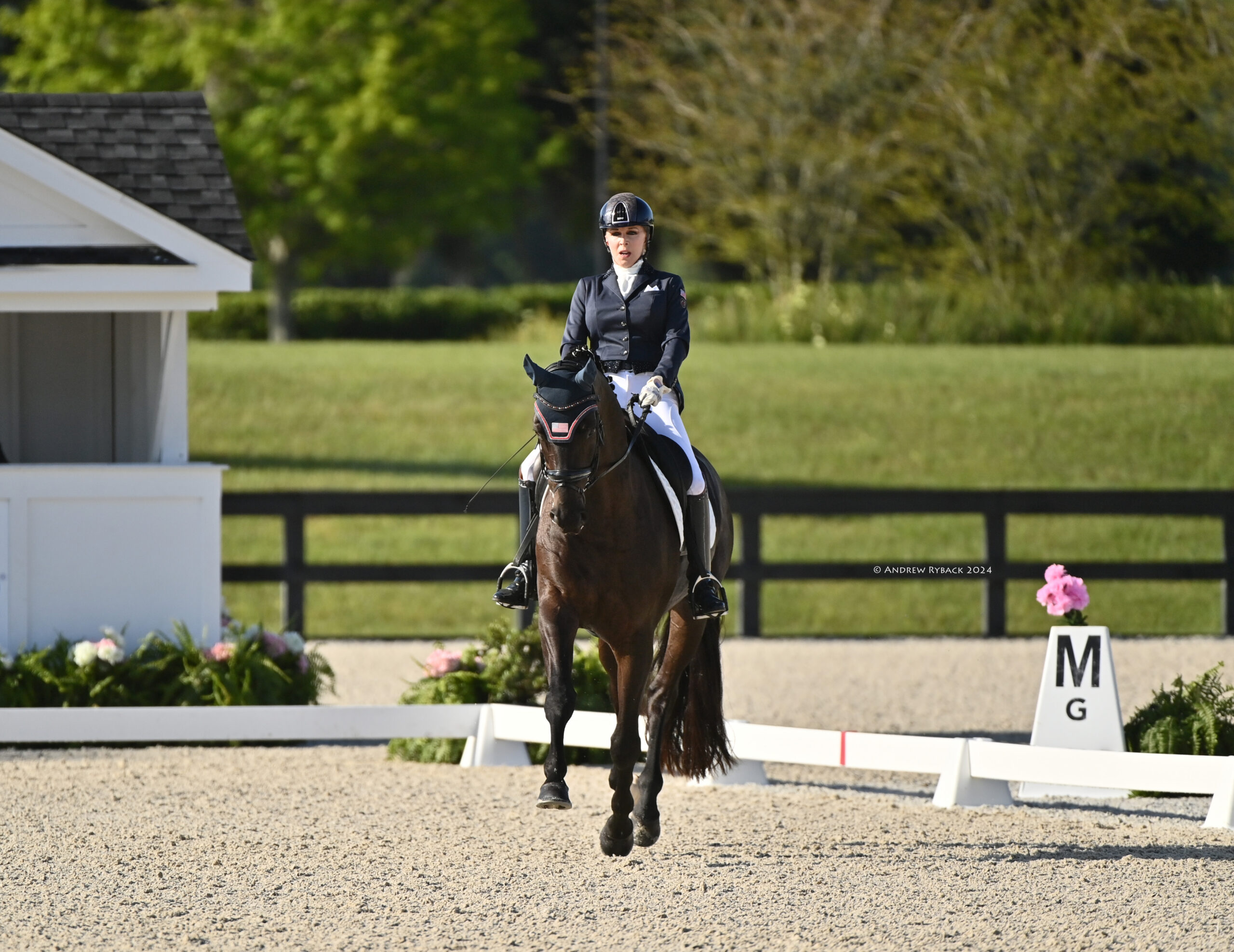 She said, “It’s fabulous, and the stadium is beautiful. It’s such an electric atmosphere, but the horses light up in a positive way. They walk into the stadium, see the bleachers and background, and it’s open. It’s not frightening, but it brings out the best in them. This is the perfect place to practice for Paris, because that [venue] is out in a big open space and very similar. This is as close as you’re going to get.”