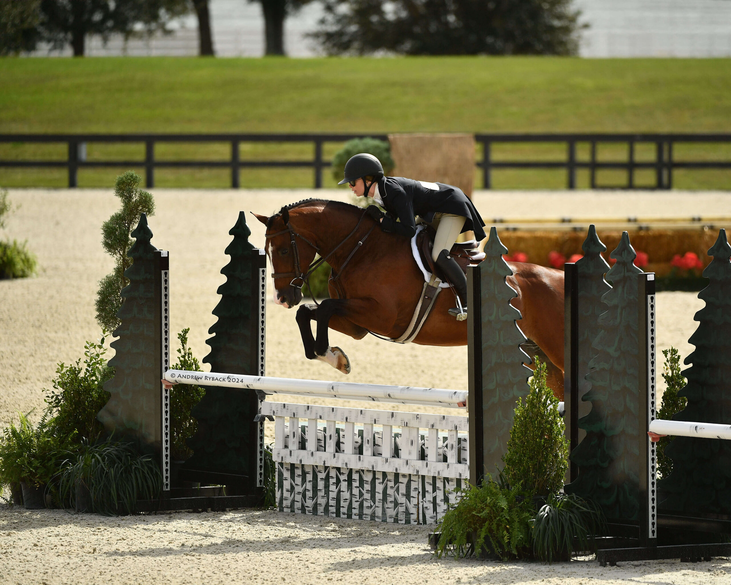 Ocala, FL – The first Hunter Derby Friday of the 2024 November Show Series took over the WEC Stadium at World Equestrian Center – Ocala, drawing hunter riders to compete for top honors in three derbies: the $12,500 Golden Ocala 3’6”-3’9” Hunter Derby, the $10,000 UF Veterinary Hospital USHJA National 3’ Open Hunter Derby, and the $10,000 USHJA National 3’ Jr/Am Hunter Derby. Course designer Dean Rheinheimer set natural tracks that allowed athletes to showcase their horses’ style and rideability.