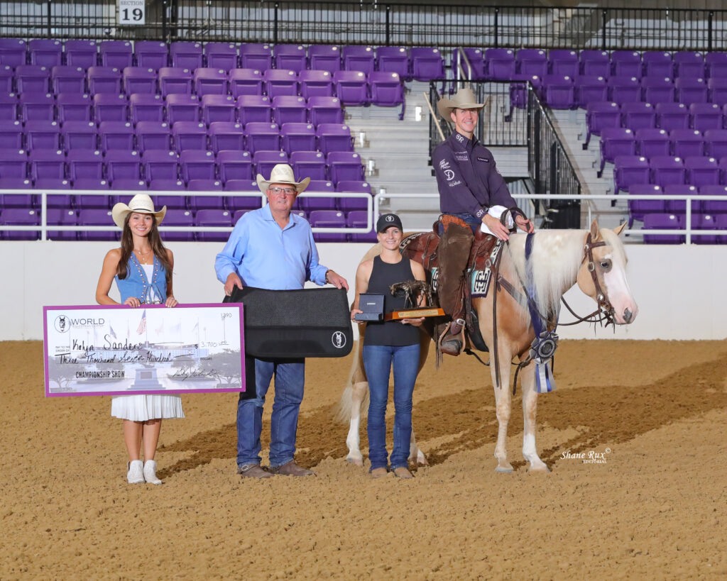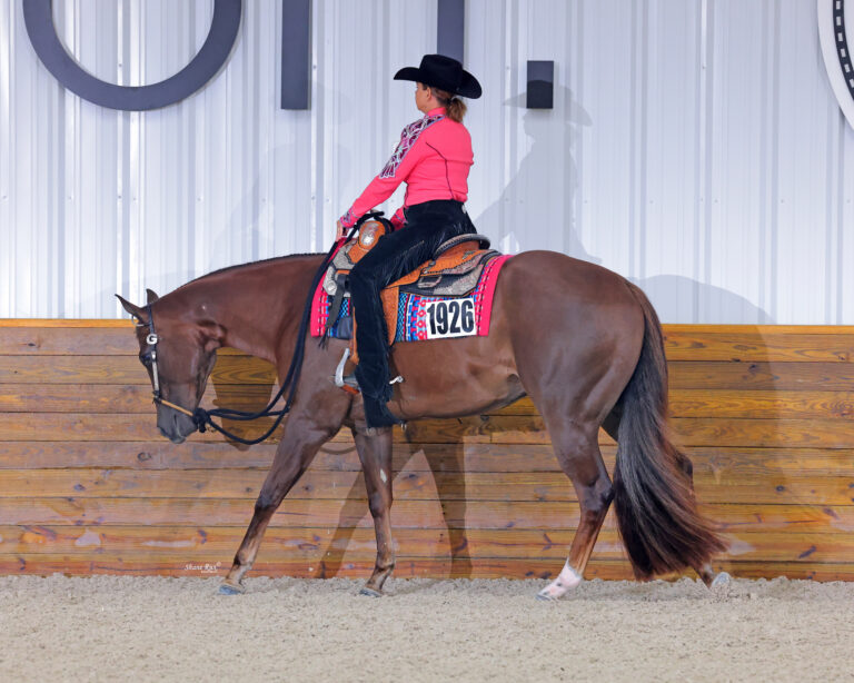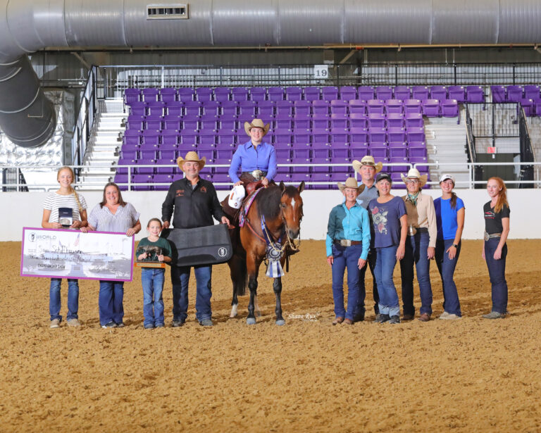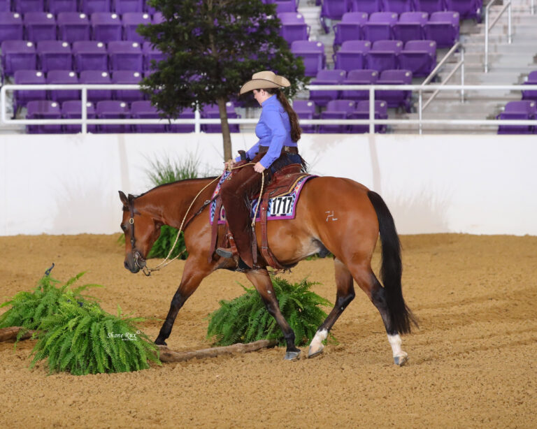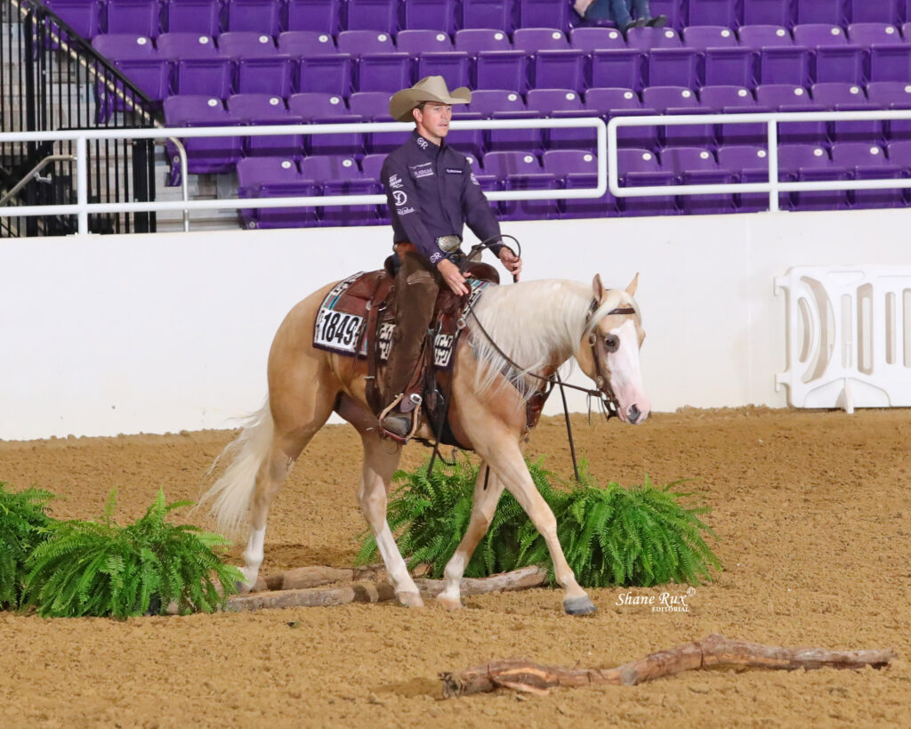 “We call him ‘Frog’ because my mom said his eyes look like Kermit the Frog’s,” laughed Schaffhauser. “We’ve had him since he was a yearling, and he’s really been a family horse—we’ve all shown him. I was so happy with the pattern today. I finally got all of my pieces together, and getting over the extended lope logs was a big win for me.”