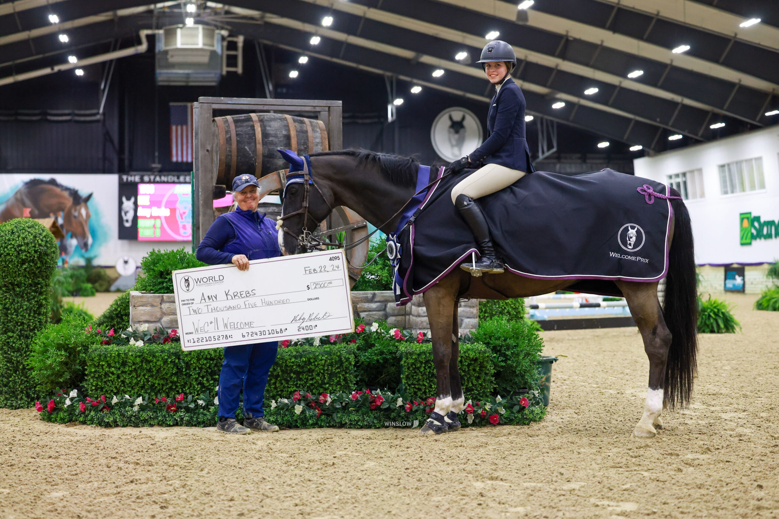 Wilmington, Ohio – Sixteen-year-old Amy Krebs (USA) marked her third win in a row at World Equestrian Center – Wilmington Winter Classic 11 during Thursday evening in the $10,000 Welcome Stake.