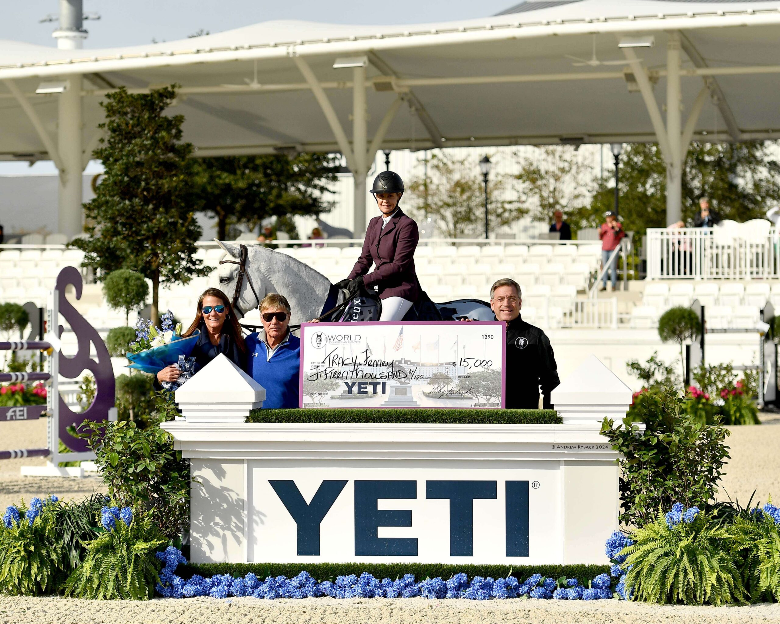 Ocala, FL – Sunday afternoon, the WEC Grand Arena at World Equestrian Center – Ocala hosted the $50,000 YETI National Grand Prix, where 23 horse-and-rider combinations competed for the win. In the end, it was Tracy Fenney (USA) aboard the famous MTM Apple (Favorit Ask x Kong’s Whopsie) who claimed victory.
