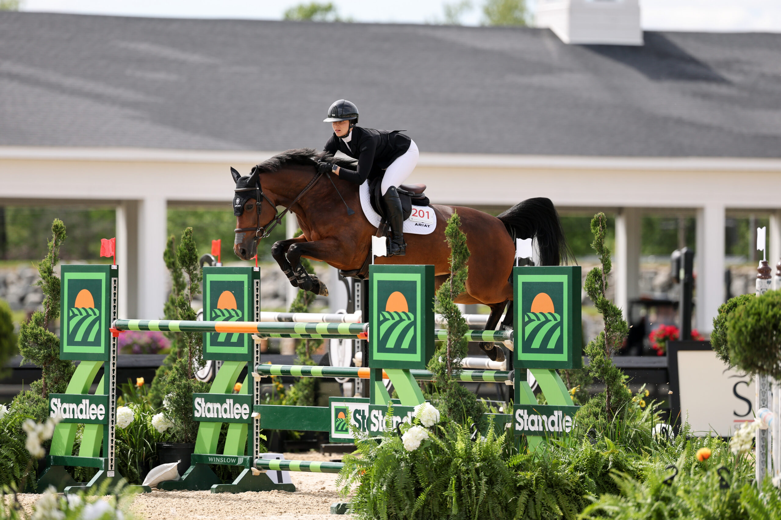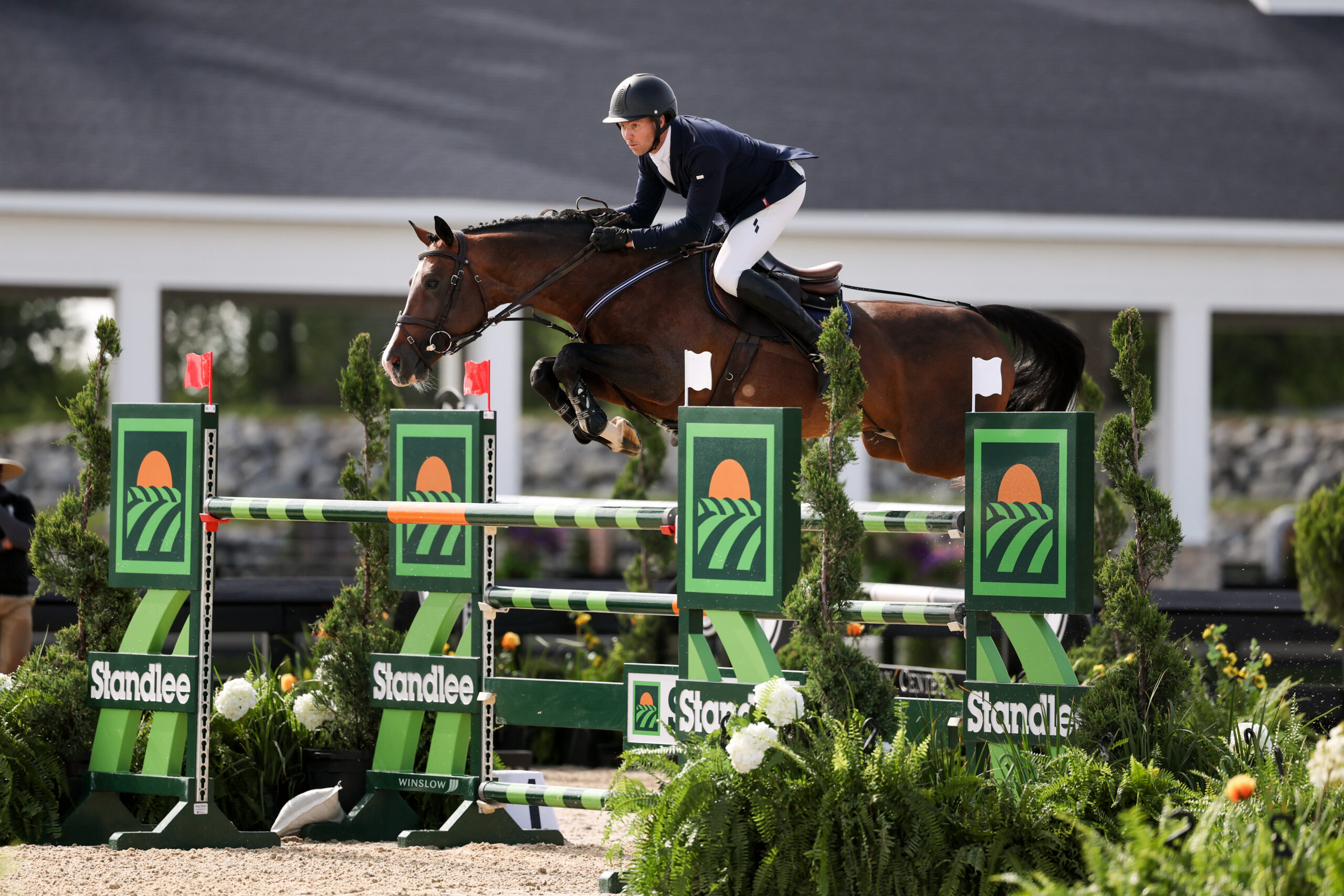Lisa Goldman-Smolen gave a strong effort but finished with four-faults, while David Cameron returned on his final ride, Oaks Come By Chance, only to have one rail down, leaving Birdsall atop the leaderboard.