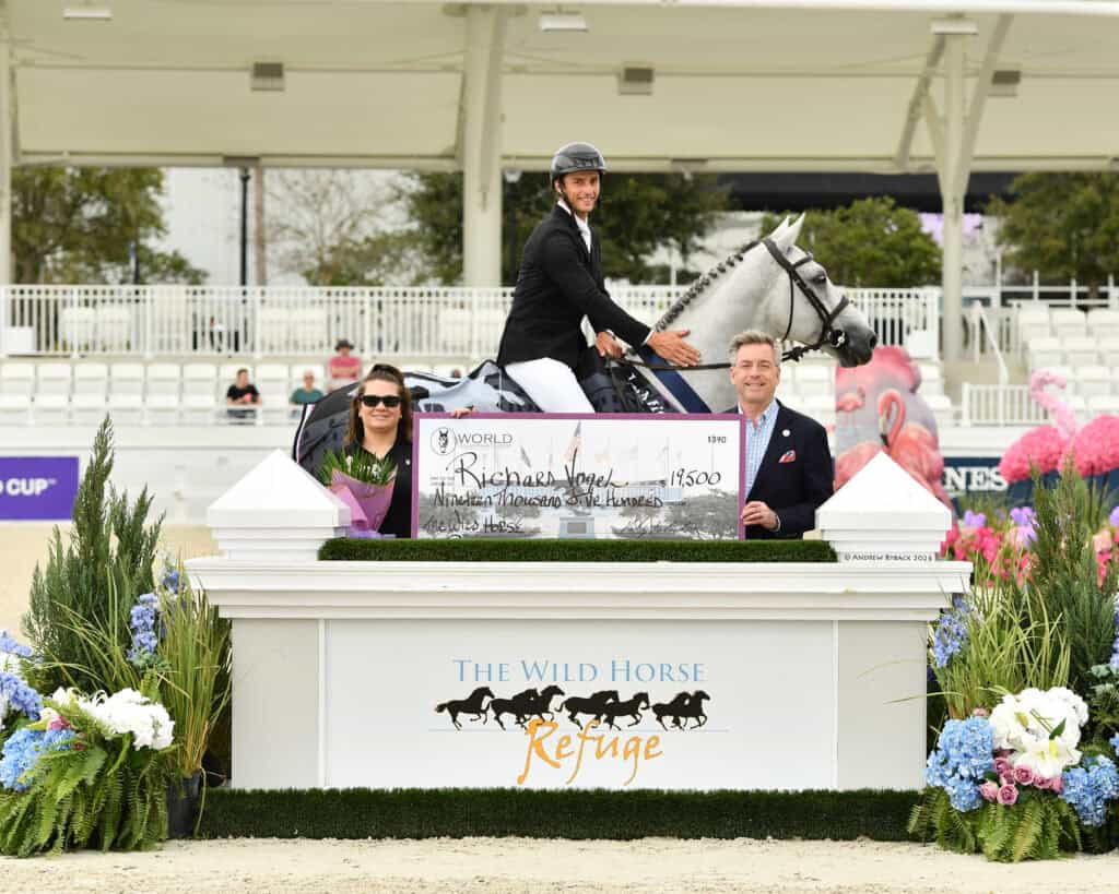 February 15, 2026 – Ocala, FL – While five-star competition has concluded for the week, top show jumping continued on Sunday, February 15, 2026, at World Equestrian Center – Ocala (WEC). World No. 6 Richard Vogel (GER) piloted his brand-new partner Cardentos, owned by Witt Pferdezucht GBR, to top a very fast jump-off in the $65,000 Wild Horse Refuge Grand Prix CSI2*, earning their first international grand prix victory as a partnership.